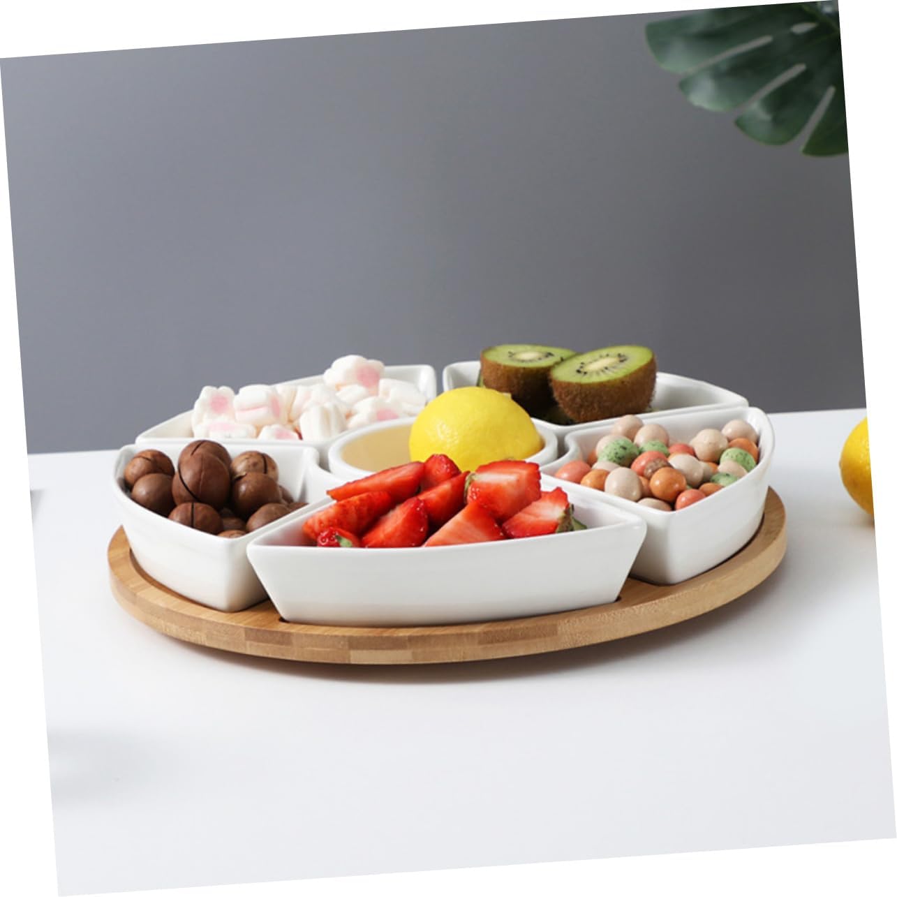 Package Include 6 x ceramic trays 1 Features -Size:9.80X9.80X3.80cm/3.85X3.85X1.49in (ceramic round dish) kitchen fruit dish -Size:29.00X29.00X1.00cm/11.40X11.40X0.39in ( plate) divided serving dish -Color:White serving bowls for entertaining -Material:Ceramic, food serving plate -Size:16.00X9.00X3.50cm/6.29X3.54X1.38in (special shaped ceramic dish) compartment plates - The smooth surface design is very easy to clean, saving you time and helping you finish the dishwashing quickly dessert divided bowl. - A category of food storage, reduce flavor annoyance, cleaning is also convenient condiment bowls. - When friends get together to share food with guests, whether it is for personal use or banquet is very ceremonial food holder. - Categorize your food so it tastes better and doesn't interfere with each other. It's very divided dish - Using and ceramic, materials, , no harm to human safety. You can use this tableware with confidence desktop divided dishes.Goods Descriptiondivided serving dish Great for treat your guests with that, which is great to decorate your food.food server This is a Divided Plate, which is made of ceramic, materials, and can be used for a long time.compartment food plate Divided design will make your food more delicious and will not affect each other