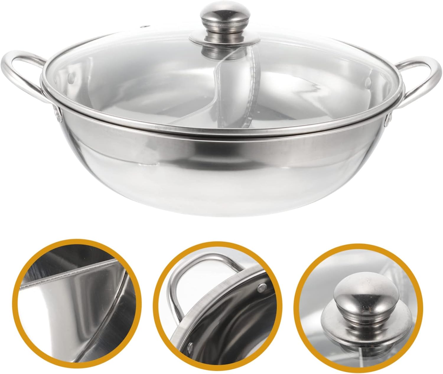 Package List 1 x Pot 1 x Lid Features - Size: 31.00X31.00X8.00cm/12.18X12.18X3.14in cooking pot -Material:Stainless steel divided pan for cooking -Crafted with stainless steel and glass materials, with craftsmanship, and to use small pot. -Hot Pot with Divider is easy and convenient to use, and easy to store when not in use. Widely used in induction cooker, gas cooker divided pot for cooking. - ColorSilver stainless pot -Suitable for a variety of stoves, such as gas stoves, induction cookers, electric ceramic stoves, etc divided pan. -With the handle, you can use the pan safely and conveniently, which is anti-scalding and non-slip split pot. -The hot pot is suitable for gatherings of people and can accommodate more food. Hot Pot is very useful big pots.Goods Informationhot pot with divider This household or restaurant Hot Pot is made of stainless steel and glass materials, more healthy and , non-sticky and easy to clean.stainless steel pots Creative design and function.double sided pot Portable design, easy to carry.shabu can use it with confidence.divided pots A nice hot pot for you to use.large soup pot Partition design, can enjoy two flavors at the same time