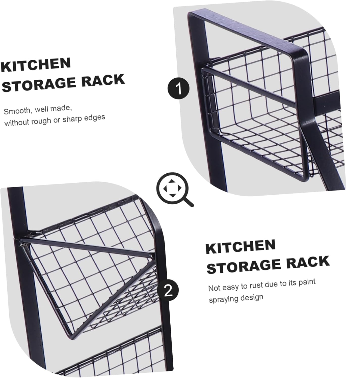 Package List 1 x storage rack Features -Color: Black Stainless Steel Rack -Size: 39.00X34.30X18.00cm/15.33X13.48X7.07in Kitchen Supplies -Material: Iron Bottle Storage Rack - Made of iron for to use Sundries Rack. - Smooth, well made, without rough or edges Seasoning Bottles Storage Rack. - due to its paint spraying design Double-layer Storage Rack. - Great for storing spices, seasonings, condiments, tea, cereals, , salt, detergents, shampoos and more Seasonings Cans Storage Rack. - Leave more space in cluttered cupboards, pantries, shelves, cupboards or countertops to keep the kitchen looking organized and neat Storage Shelf.Goods InformationStorage Holder Are you still upset about the of kitchen seasoning bottles? This kitchen organizer will help you solve the problem.Bottle Storage has enough space and can store different bottles safely.Storage Organizer A nice helper for you to keep kitchen clean and neat
