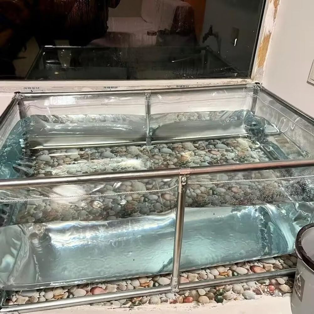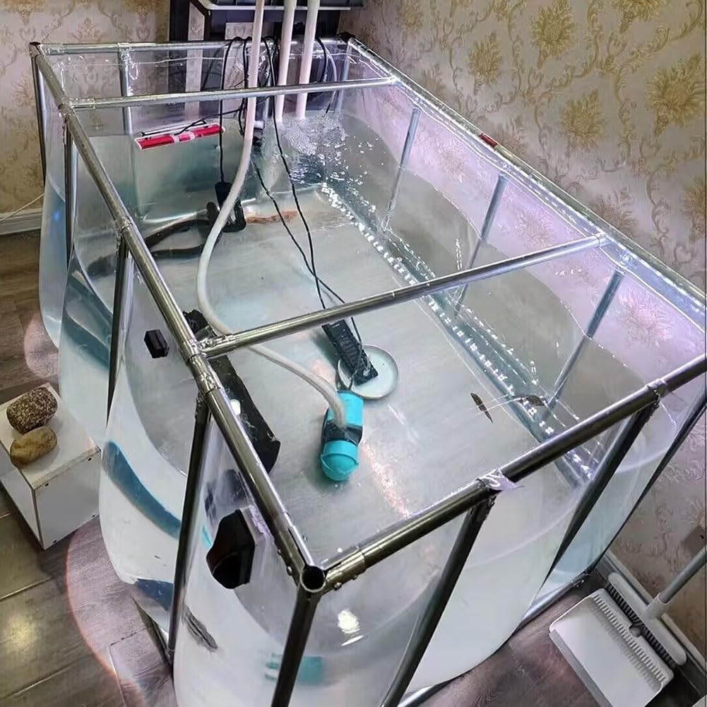 Transform your outdoor and indoor spaces with our 360° Viewing Garden Aquarium Pond, a perfect addition to your patio, garden, or living room. This elevated pond showcases crystal-clear observation panels, seamlessly blending functionality with natural beauty. Designed with aquatic enthusiasts in mind, our pond features 1.3mm soft-glass panels that provide an unobstructed view of your koi, goldfish, or aquatic plants, allowing you to enjoy and monitor your underwater ecosystem effortlessly. **Product Highlights:** - **Versatile Use:** Ideal for a variety of aquatic life including koi, goldfish, saltwater fish, and turtles, this pond enhances any space, from patios to garden decks. - **Durable Construction:** Made with robust knife scraper cloth and a canvas weight of 750gsm, our pond boasts excellent tear resistance and a strong bearing capacity for long-term use. - **Easy Installation:** The package includes all necessary accessories, requiring only basic assembly with a single person. Disassembling and storing the pond is simple, making it convenient for seasonal changes. - **Practical Features:** Equipped with a drain valve for easy water management. For optimal performance, we recommend using a filtered water pump or pipe siphon. If the drain outlet is opened, ensure to wrap the thread with tape to prevent leaks. **Specifications:** - **Color:** Blue and clear - **Clear Thickness:** 1.3mm - **Size:** Length x Width (customizable to your space) - **Quantity:** 1 pond Elevate your home decor and create a serene environment with our Above Ground Koi Pond with Window. Whether you're an avid fish keeper or simply looking to enhance your landscape, this pond is designed to bring tranquility and beauty to your surroundings. Enjoy the captivating views and the calming presence of water in your life today!