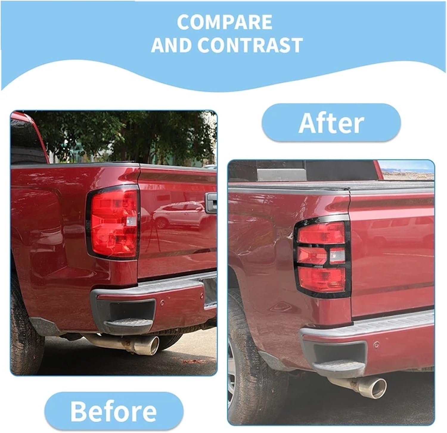 ABS Exterior Rear Taillight Lampshade Protective Decorative Cover Compatible For Chevy Silverado 2014-2018 Car AccessoriesHello! Welcome to our auto parts store. All kinds of high-quality auto parts are gathered here, covering many fields such as engine, chassis, body and electronic equipment. We are committed to providing you with the most suitable accessories for your car to ensure your driving experience is more comfortable and safe. Whether you are looking for parts needed for routine maintenance or want to upgrade the performance of your car, we will serve you wholeheartedly. Look forward to providing the best solution for your car!