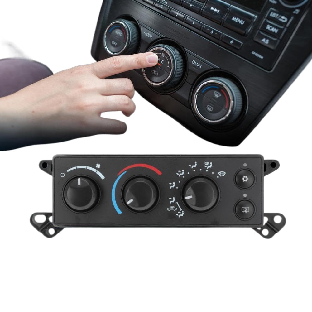 OEM-equivalent air conditioning control switch panel for Ram 1500, 2500, 3500, and Dakota models from 2005–2006.This module regulates the HVAC system to provide control over temperature, airflow, and defrost functions.Designed as a replacement for the vehicle’s A/C heater climate control module.Features responsive knobs for air volume control, wind direction control, temperature regulation, internal circulation, refrigeration switch, and front/rear windshield defogger.Constructed from plastic in black finish.Includes 21-pin connector (5+16 configuration).This is a non-OEM accessory.Replace the climate control module if experiencing unresponsive buttons or knobs, inconsistent temperature control, display errors or backlight failure, blower fan speed adjustment issues, or visible cracks on the switch.