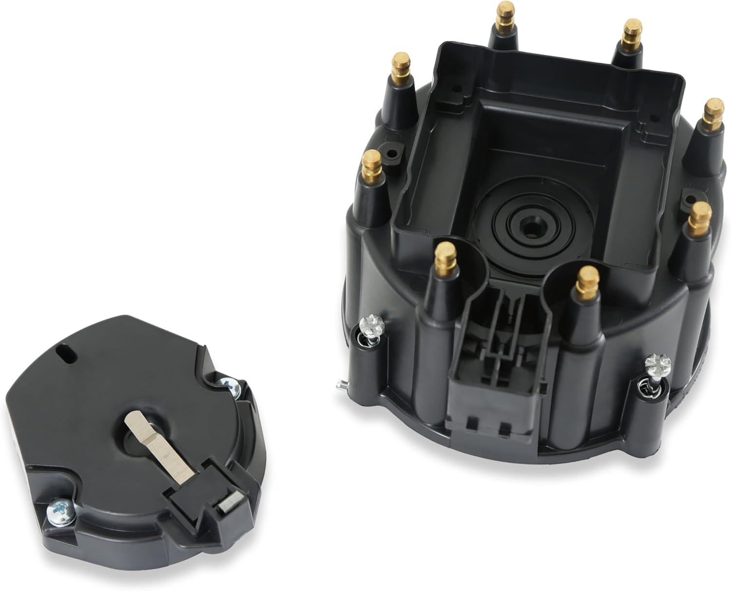 ACCEL 8123 Cap and Rotor Kits create an impenetrable barrier to arc-through and crossfire. Specially designed to combat the severe demands placed on high-output ignition systems in GM V8 engines, these black HEI Coil-in-Cap style distributor caps guard against the high temperatures and surges of spark current that can melt molded components in OE caps. Made from a high-performance 60kV-rated alkyd compound, they're stress-relieved immediately after molding to ensure dimensional stability. Highly conductive, corrosion-resistant brass inserts and stainless-steel rotor springs allow unrestricted spark-energy flow.