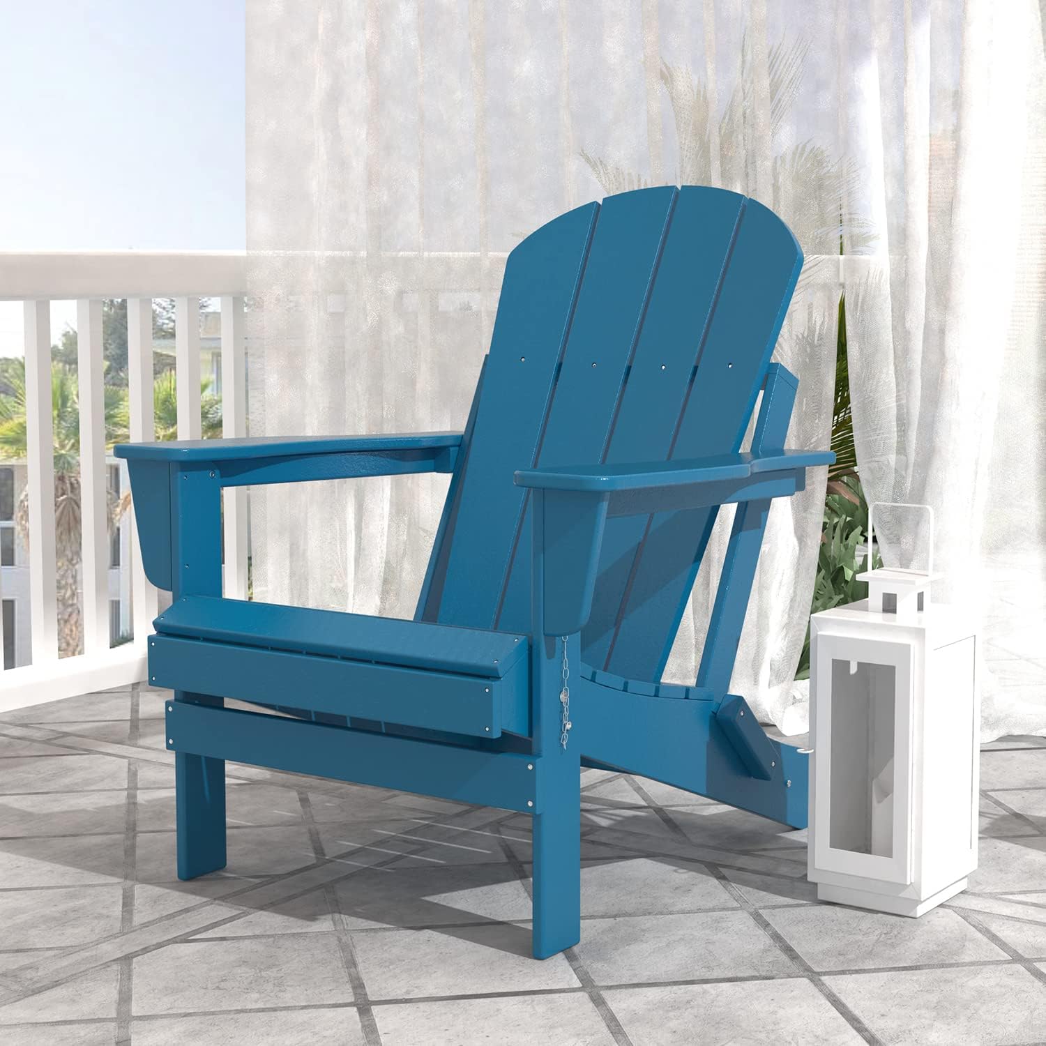 Are you still worried about not finding a suitable outdoor chair? Buy folding Adirondack chairs to make more room for your home! Our Adirondack chairs can use it flexibly anytime, anywhere. There are large seats, tall backrests, and wide armrests to rest and relax. You can also choose from five trendy colors to match your home decor. Choose an Adirondack chair, choose us without hesitation! Specification: Frame Material: HDPE Fixed Method: Stainless Screw, Nut, Gasket Overall Size: 31.5"W x 30.3"D x 36.2"H Seat size: 20.9"D x 20.5"W Color: Blue Scratch-resistant: Yes Fade Resistant: Yes Rust Resistant: Yes Foldable: Yes Seat Weight Capacity: 330 lbs N.W/G.W: 40 lbs/42 lbs What's in the Box: 1x Adirondack chair 1x Manual 1x Hardware 1x Install Tools