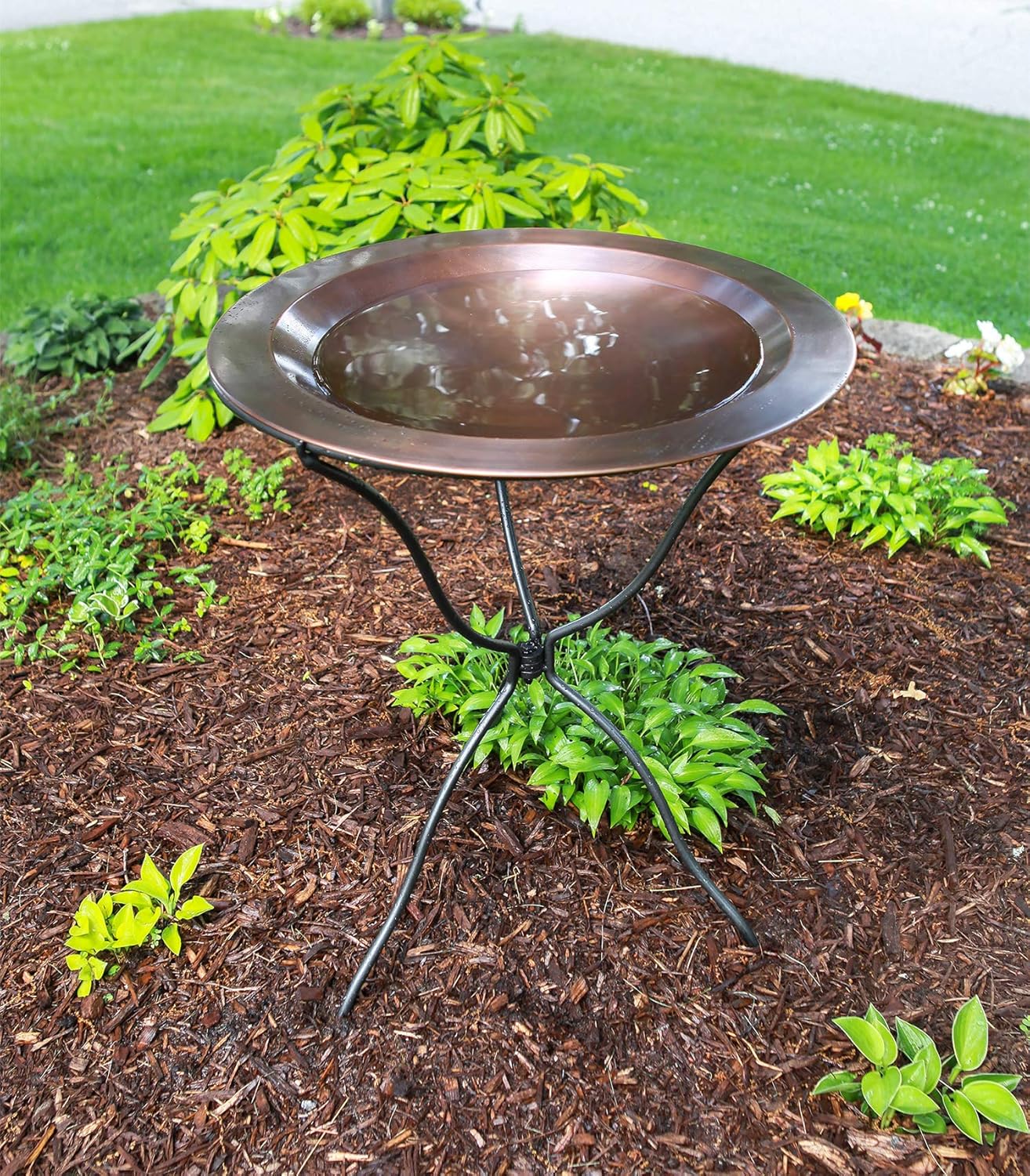 Our largest birdbath, the Classic Birdbath is a wide, shallow rimmed bowl, with smooth Antique Copper Finish, and without a threaded base.