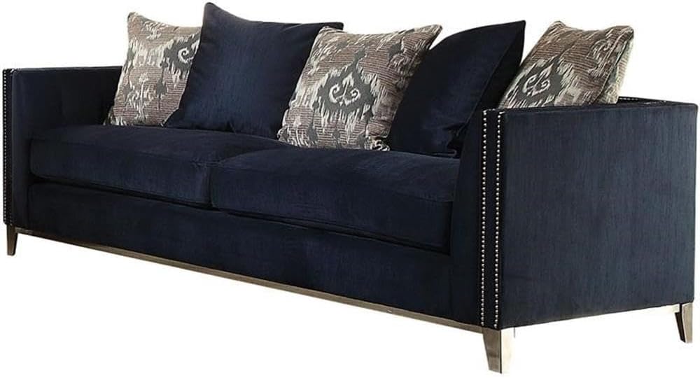 ACME Furniture 52832 phaedra chair with 2 pillows, Blue Fabric. 2 pillows included: duck feather filling. Reversible seat: removable cover box Cushion with welt. Pocket coil included. The country of Origin of the product is China.