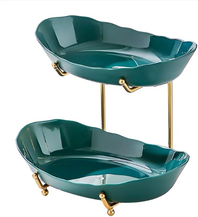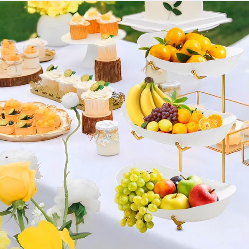 | Color | Gold Rack Double Layer White Plastic Fruit Plate |