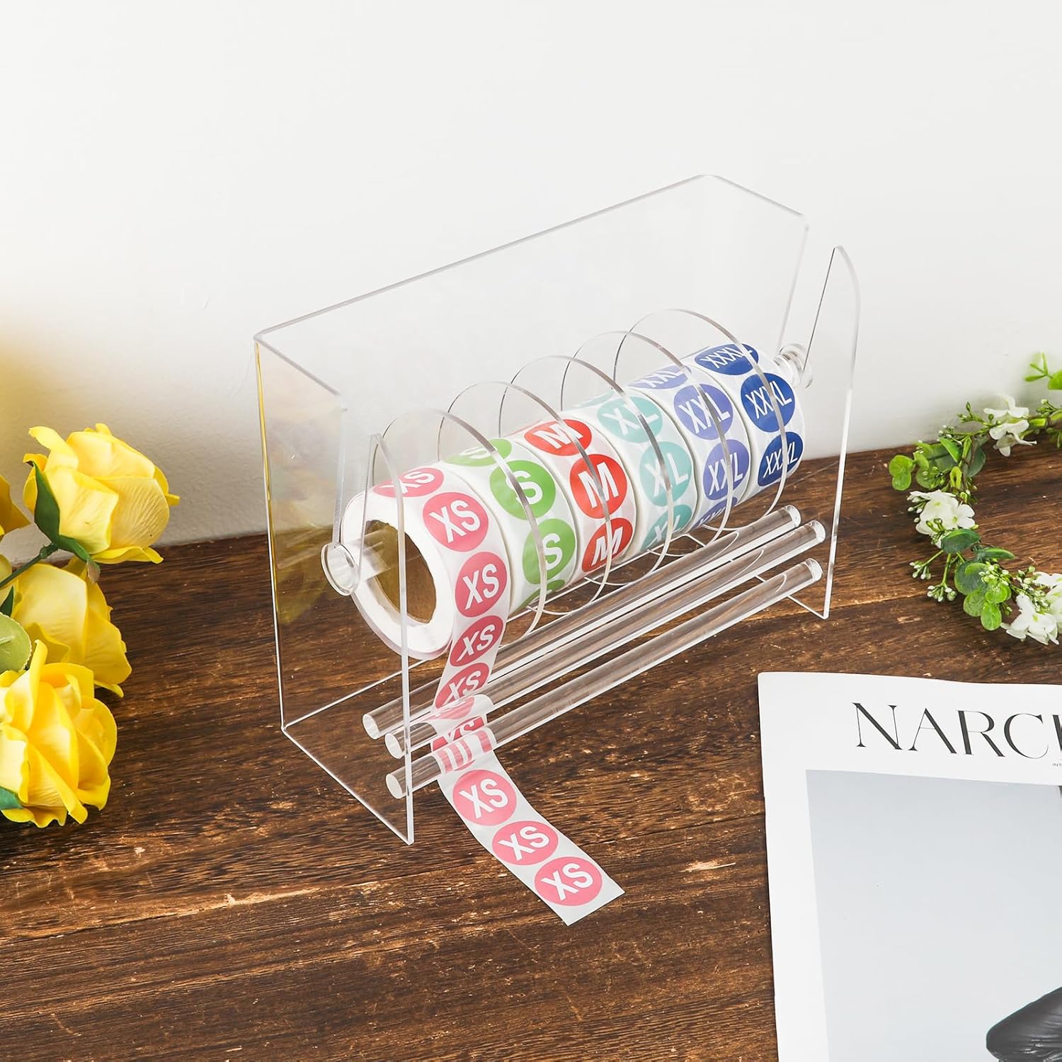 Specification: Color: transparent Material: acrylic Product Size: 22.9x9x18cm/9x4.5x7in Package details: 1 x sticker dispenser Note: Due to manual measurement, the size and weight may have a certain error. Due to the difference between different monitors, there may be a slight color difference existed.
