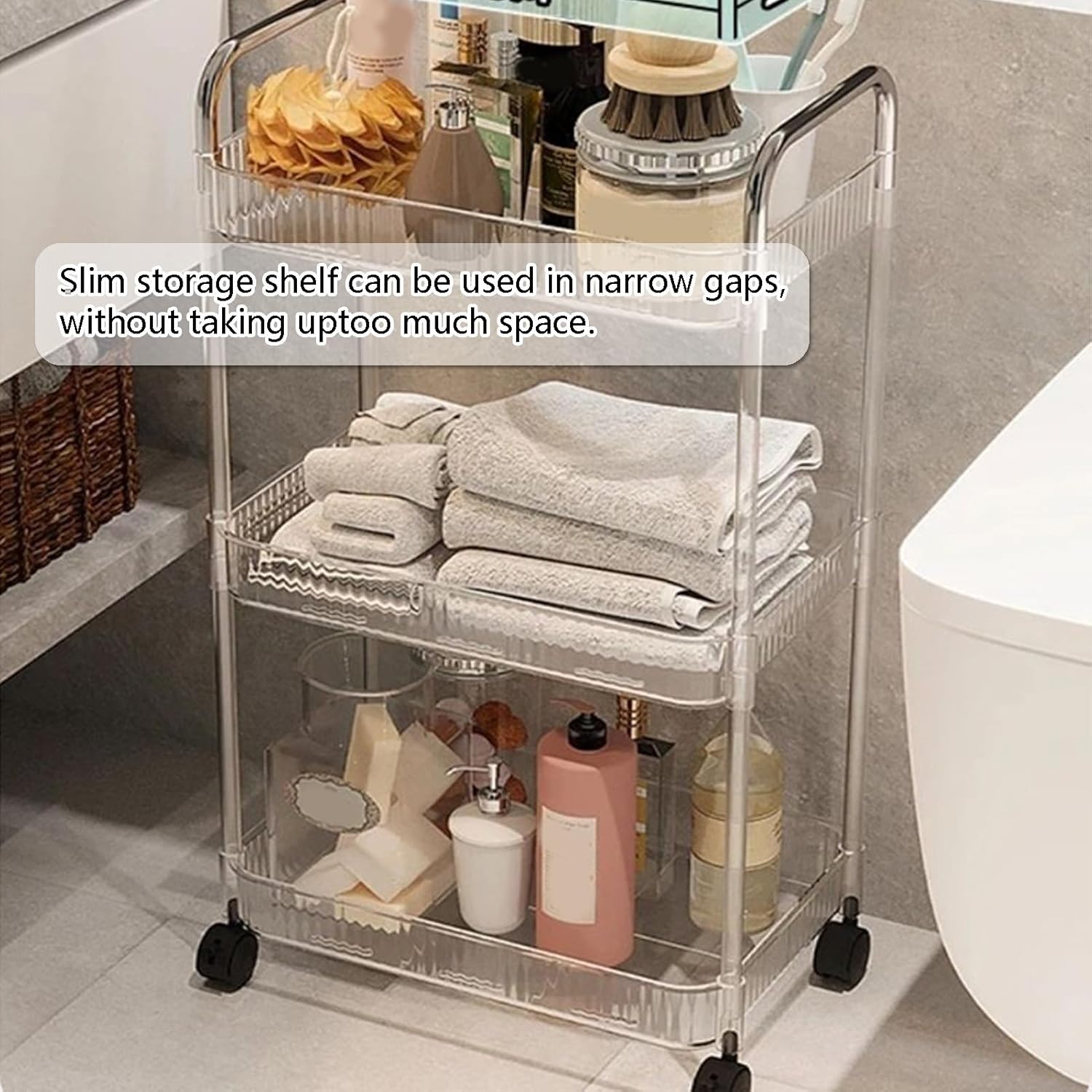 ✔Portable storage new choice, can use storage space to the greatest extent, make your life neat and clear. Stylish design blends seamlessly with any existing decor, add texture to your home.✔Feature:Multi-layer storage design meets more storage needs.High-quality materials, sturdy and durable, strong support.Universal wheel design, easy to move and save effort.Stainless steel handrails, easy to push and pull.Slim storage shelf effectively utilizes unused space and takes up little floor space.✔Specification:Name: Rolling Storage CartMaterial: Acrylic + stainless steelColor: transparentNumber of Tiers: 2-tiers, 3-tiers, 4-tiers✔Package includes:1 × Utility Storage Cart✔Notes:1. Due to manual measurement, please allow 1-3 cm for discrepancies.2. Due to the difference between different monitors, the picture may not reflect the actual color of the item. Please refer to the actual product.