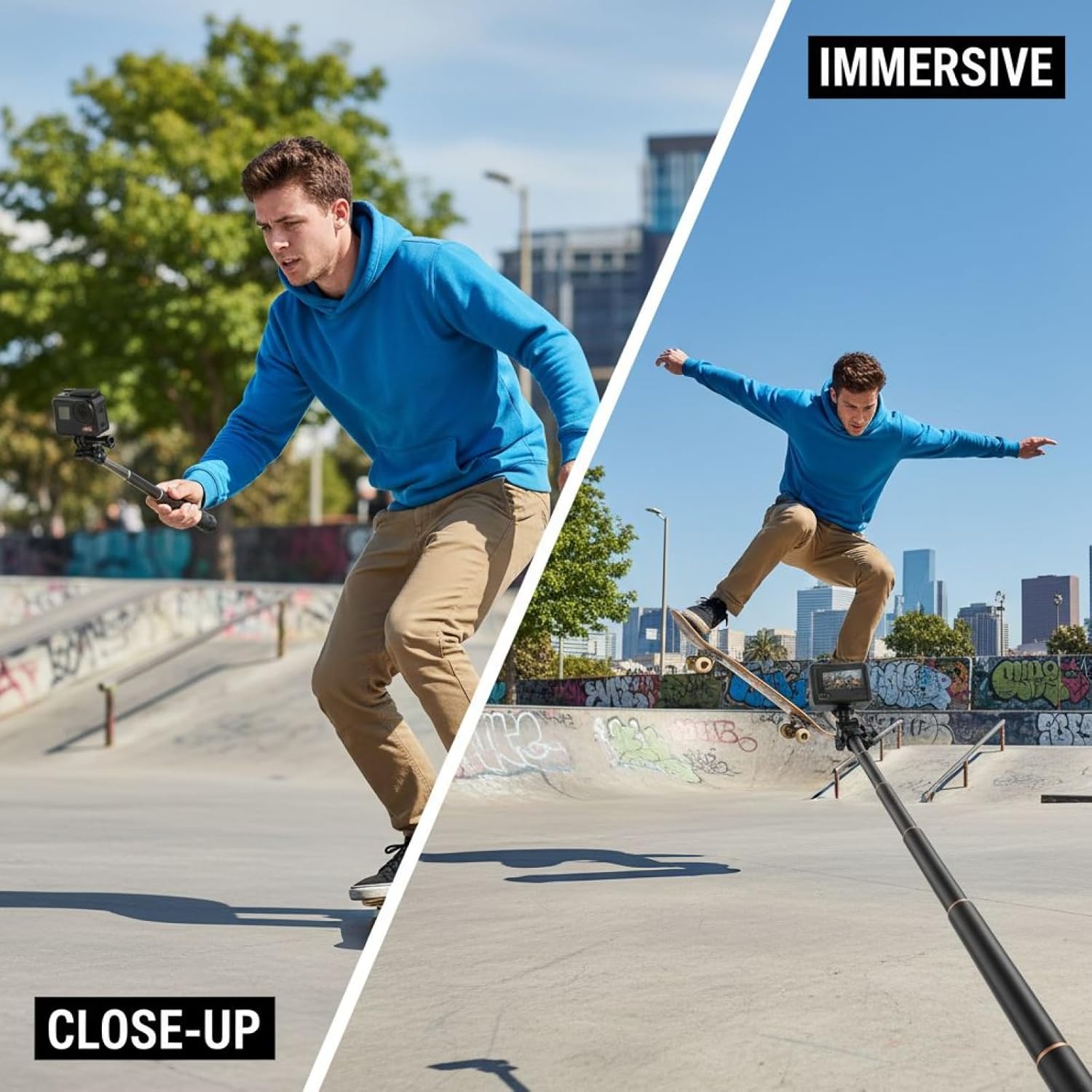 Color: Black Gold Material: Carbon Fiber Size: Selfie Stick (contracted): 17.7 in / 45 cm Package Includes: 1 x Selfie Stick Note: - Please refer to the measurement. Tiny measuring error is allowable in normal range. - There might be a little color difference due to the monitor, camera or other factors, please refer to the physical item.
