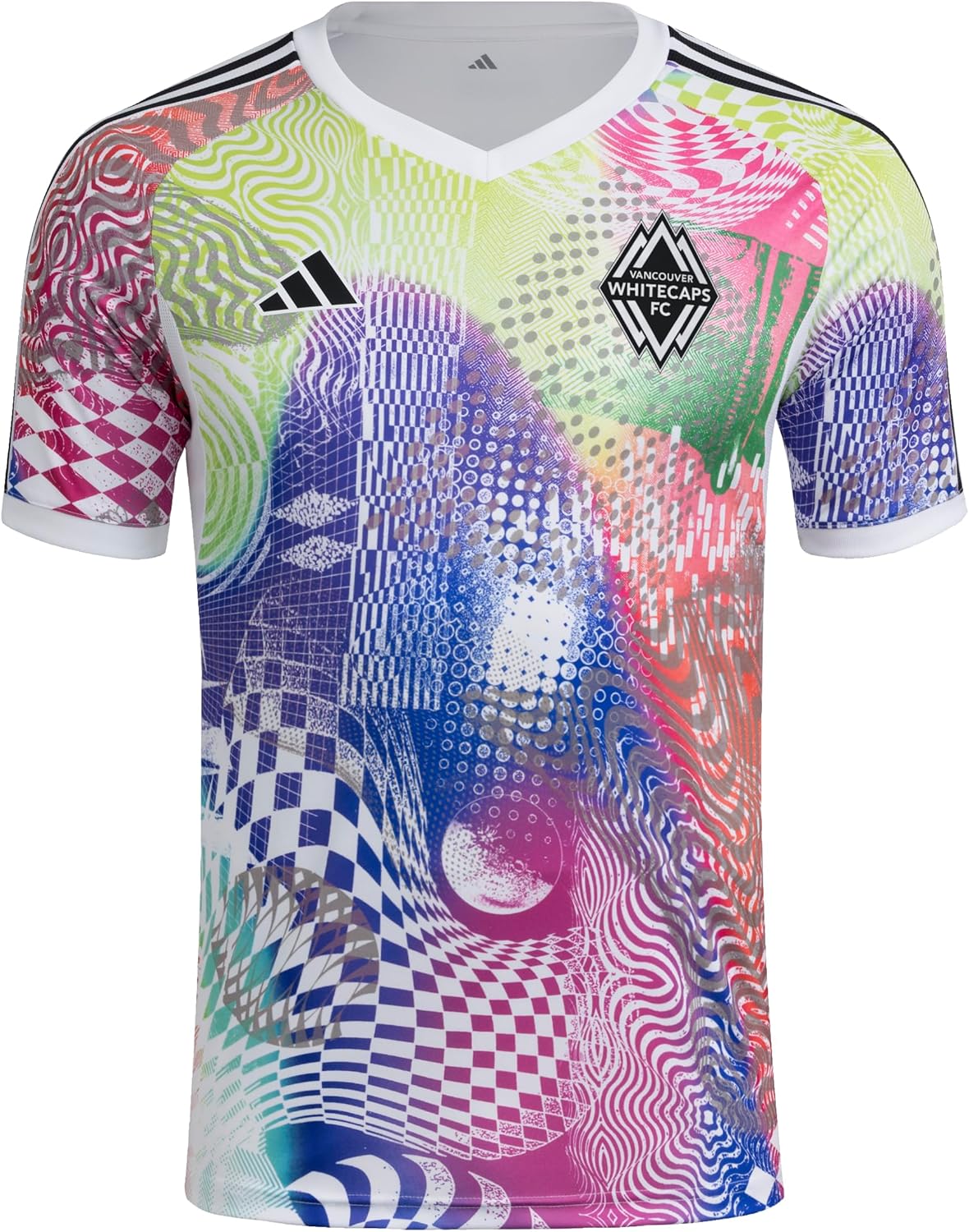 Celebrate bold self-expression with the adidas x Jeremy Scott Vancouver Whitecaps FC Pride Jersey, designed for Pride 2025. Inspired by '90s art, dance music and club culture, this jersey combines vibrant graphics with a slim fit that hugs the body for a sleek look. The moisture-managing AEROREADY technology keeps you dry, and team crests and graphics on the chest highlight your Whitecaps pride.