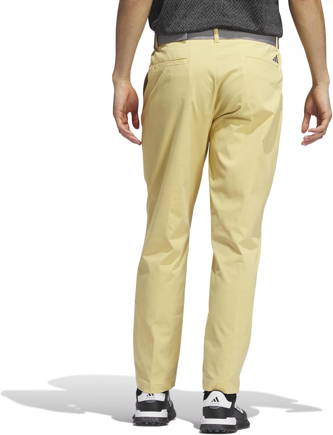 The adidas Golf Ultimate 365 Nylon Chino Golf Pants are built-in stretch pants for men that provide full mobility during your swing. The regular fit silhouette strikes a comfortable balance between loose and snug. Plus, a durable water-resistant finish sheds light rain and snow. It features a zip-fly & button closure, belt loops, two hand pockets on the sides, two welt pockets on the back, and a straight leg style. The brand logo detail on the back adds an authentic touch. 95% recycled nylon, 5% elastane twill. Machine washable.