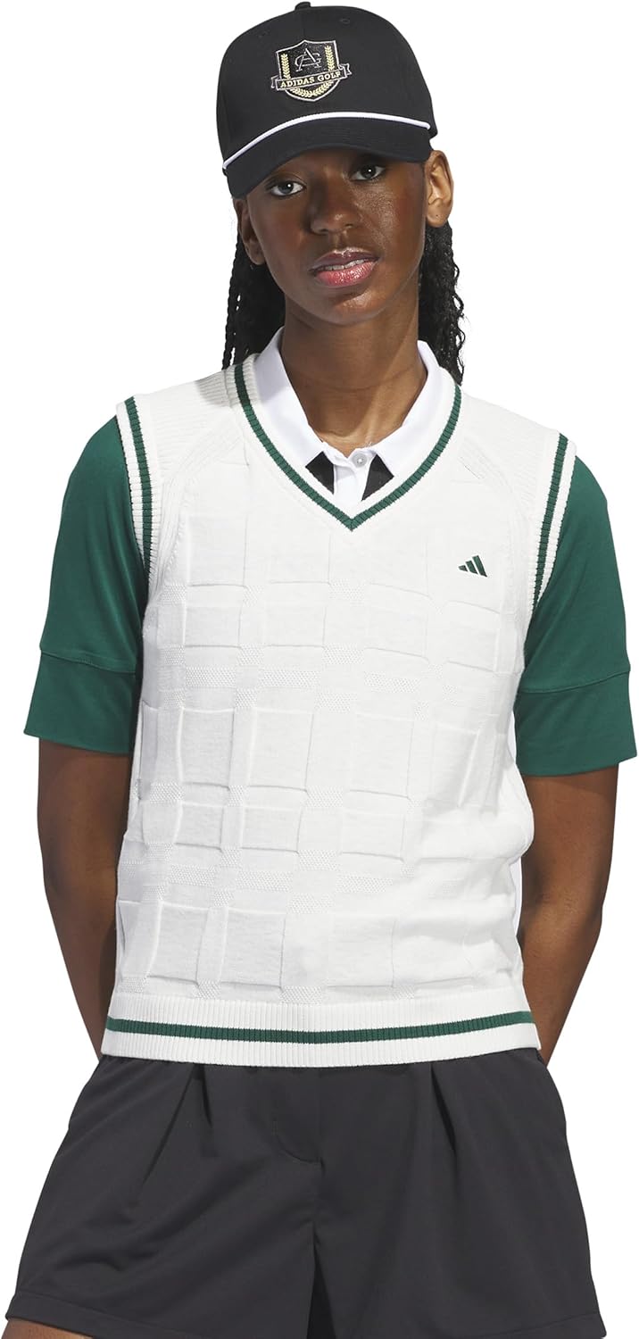 Classic never goes out of style. This women's adidas golf sweater vest goes with everything. The cotton blend is extra soft. A minimum of 70% of this product is a blend of recycled and renewable materials.