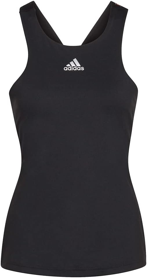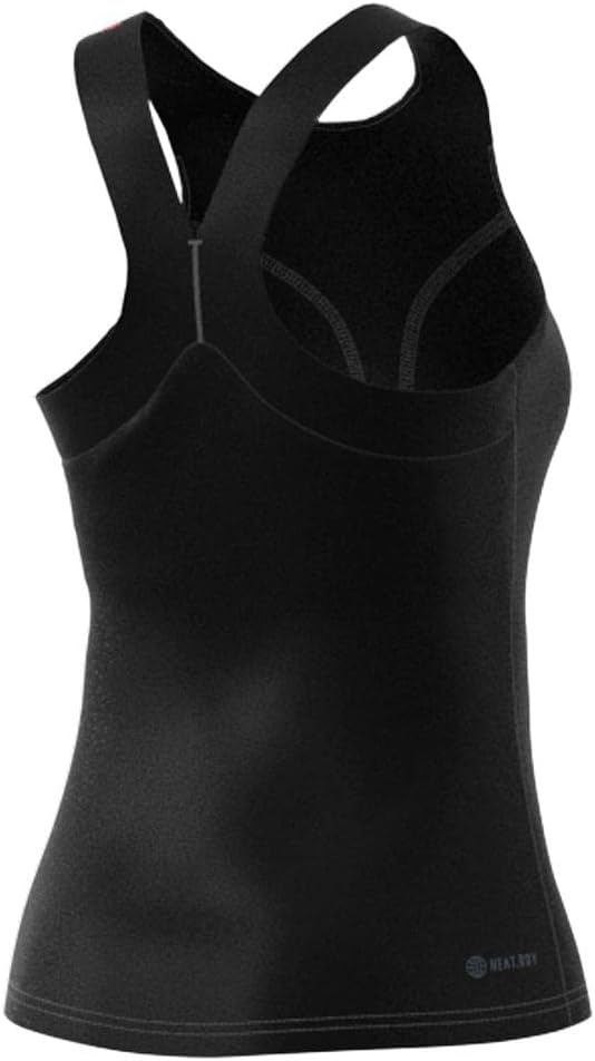 Take your tennis game higher in this women's slim-fitting tank top. Part of the adidas Gameset collection, it has a soft Y-elastic strap that gives your shoulders plenty of room to wind up for shots. HEAT.RDY keeps you fresh on hot days so you can play your all-action game without wilting. An integrated bra adds comfort and confidence.