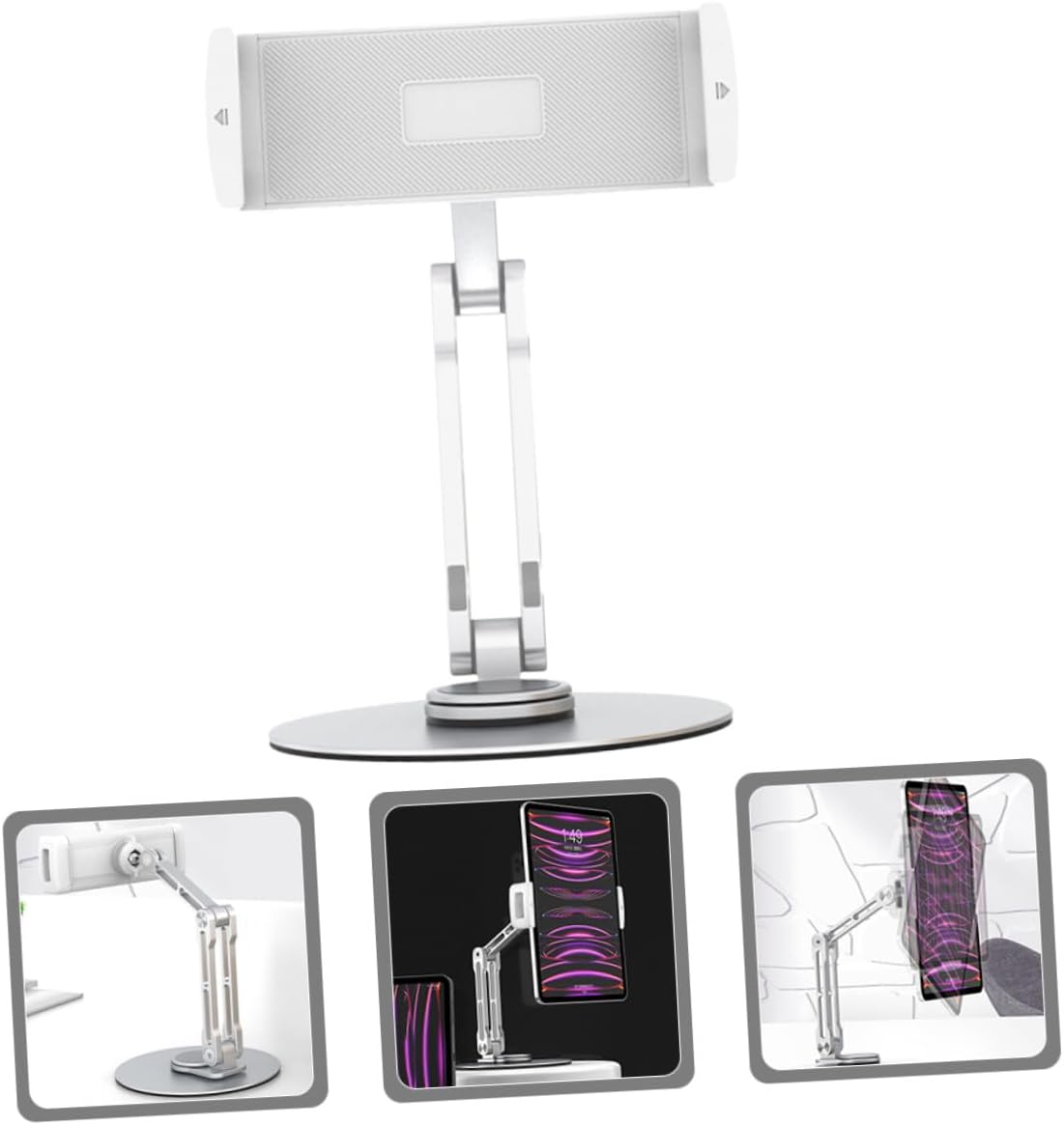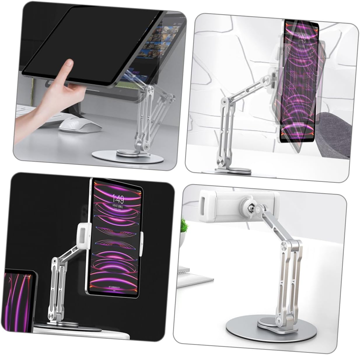 Package Include 1 x Tablet Holder Features -Clamp adjustable range: 13.5-26.5cm/5.31-10.43in foldable tablet stand - Color: Silver -Product Info:Aluminum alloy flat plate bracket - Size: 26.00X11.50X11.50cm/10.22X4.52X4.52in -Material:ABS, aluminum alloy, silicone - The bracket can be adjusted according to your use, very professional and practical, durable in use compact desktop tablet holder. - With strong compatibility, this adjustable holder can be suitable for most kinds of tablets folding aluminum alloy tablet stand. - Perfect for home, bedroom, living room, office, dorm, school use, so can make your life more convenient tablet holder for room. - This tablet bracket is designed to free your hands while watching videos, listen to Musics, make a video call stand for tablet. - Not easy to deform, smooth and beautiful, light weight design for you to take to any places you want folding tablet holder.Goods Descriptiontablet bracket If you have to work with your tablet for a long time a day, you should take at our product.desktop stand This tablet holder is adjustable, can adjust to a comfortable sitting position.tablet holder for desk Versatile design allows for use in various settings, including home, office, or while traveling