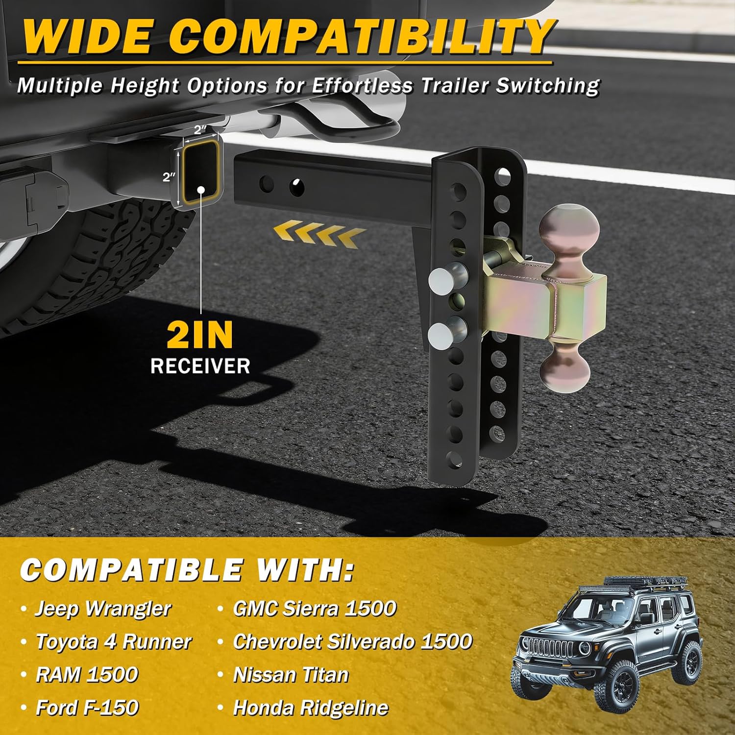 | Included Components | Adjustable Drawbar Trailer Hitch Kit |