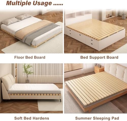 Transform your sleep environment with our ultra-minimalist bed frame solution, expertly crafted for both comfort and hygiene. Our premium wooden slats provide the perfect foundation for your mattress, ensuring you wake up feeling refreshed and energized. **Product Specifications:** - **Material:** Durable Pine Wood - **Load Bearing:** Supports up to 500kg (1100 lbs) - **Slat Width:** 10cm (3.94 inches) - **Slat Gap:** 5cm (1.97 inches) - **Slat Thickness:** 2.6cm (1.02 inches) - **Note:** Please measure your bed width before ordering for the perfect fit. **Key Features:** 1. Thickened anti-skid pads help eliminate noise, providing a quiet sleep environment. 2. An ideal replacement for broken or damaged bed slats, ensuring your mattress remains fully supported. 3. Prevents mattress sagging with reliable plank support, extending the life of your mattress. 4. Enhances overly soft mattresses by providing essential support and promoting air circulation. 5. Rounded edges and corners ensure safety, minimizing the risk of accidental bumps. 6. Perfect for loft beds and low-clearance or sloped ceiling bedrooms, maximizing your space. 7. Conveniently rolls up and folds for easy storage when not in use. 8. Evenly spaced slats with fabric banding make installation a breeze. **Package Includes:** - 1× Bed Slat (Wood Slats Only, Bed Frame Not Included) **Important Notice:** - A slight odor upon opening is normal and will dissipate within two to three days. - Confirm size before purchasing; a 1-3cm deviation may occur due to manual measurement. Experience the difference in comfort and support that our bed slats deliver for a rejuvenating night's sleep. Elevate your bedroom today!