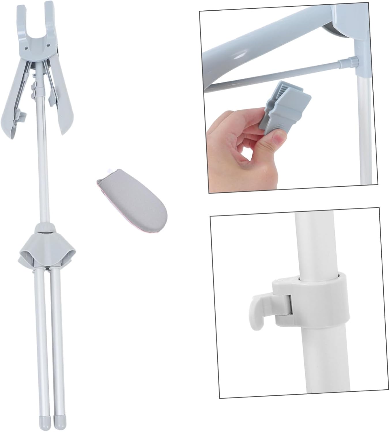 Package List 1 x Bracket 1 x glove Features -Size(glove):24.00X17.00X3.50cm/9.43X6.68X1.38in bracket -Comprehensive accessories: this rack comes with an ironing glove and a dedicated hanger for the steam iron, ensuring you have all the tools needed for garment stand -Enhanced stability: the sturdy construction of the garment stand ensures it remains stable during use, preventing any accidental tipping or movement garments rack -Color:Grey garment accessories -Portable design: the foldable clothes rack is lightweight and easy to move, making it ideal for both home use and travel clothes hanging rack stand -Adjustable height: the telescopic clothes hanger features adjustable rods, allowing you to adjust the height to suit different clothing items and steaming preferences clothes ironing accessories -Efficient storage: the foldable design allows for compact storage, making it easy to tuck away when not in use, saving valuable space in your home folding steam rack -Material:Aluminium alloy, plastic, cloth clothes steam rack -Height adjustable range: 84-160 cm hanging ironing rack -Size(rack):160.00X57.00X57.00cm/62.88X22.40X22.40in home floor-standing ironing rackGoods Descriptionfolding steam telescopic feature allows you to adjust the height to suit your needs, making it ideal for steaming various of clothing.adjustable garment rack The sturdy construction ensures stability, providing a reliable platform for your garment steaming tasks.steam hanger The adjustable standing hanger offers versatility and ease of use