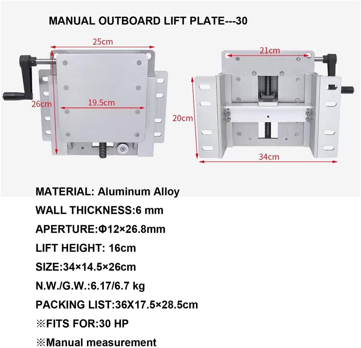 Adjustable Manual Ship Jack top Plate, high-Grade Marine Aluminum Alloy, Suitable for External Engine Ships with a Maximum Power of 30 Horsepower