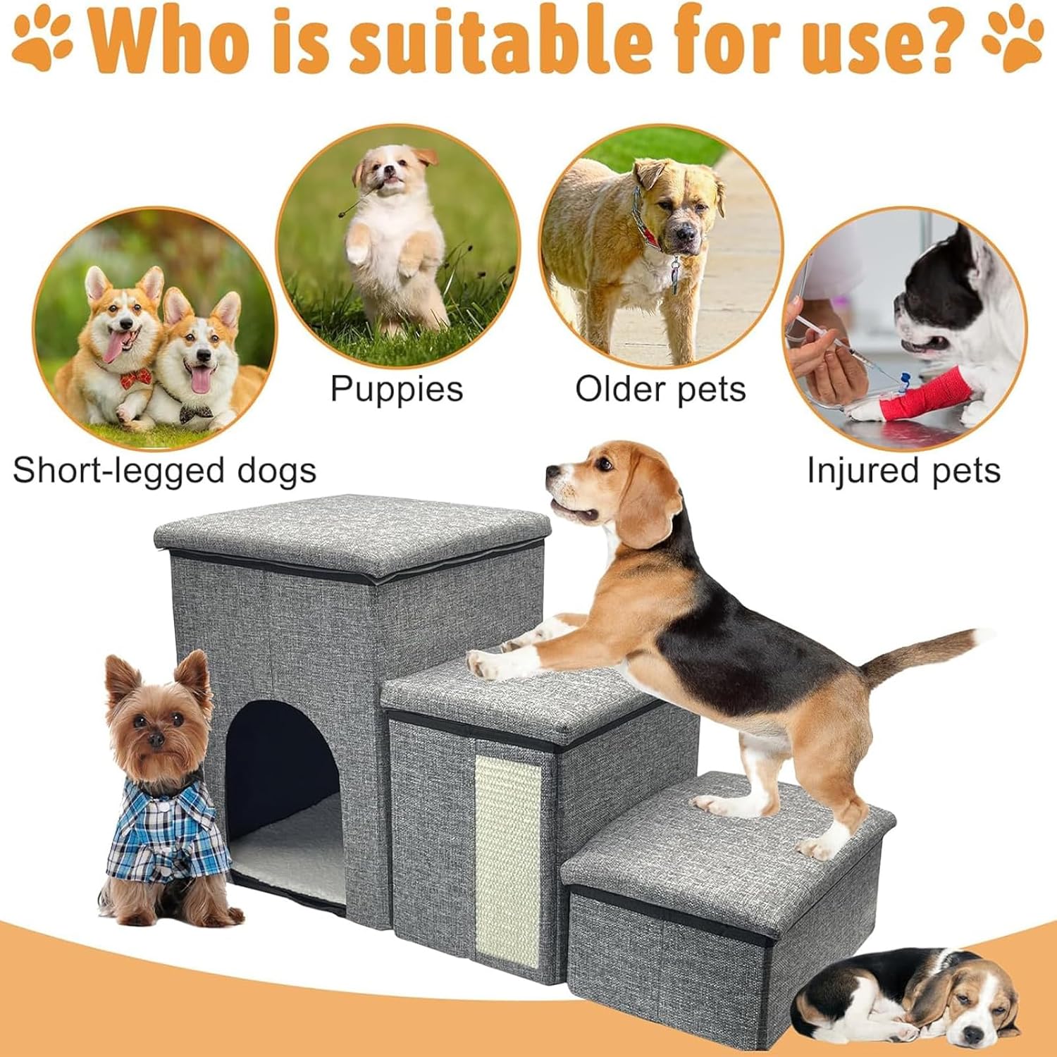Adjustable Pet Stair for Bed Rise, Dogs and Cats, Household Climbing Supplies Furniture Pets Ladder Storage Box Features: Help your small dog reach bed or sofa with this stair Reduce joint pressure Suitable for owners of small dogs, especially those with older or small breeds, or dogs with joint concerns This small dog stair gives a practical for allowing your furry friend to reach bed, sofas, or other high furniture comfortably and safely It not only provide access to resting area but also helps in pet training and showcasing Our small pet stair is the perfect accessory to let your puppies or cats easily reach the bunk bed or sofa Specifications: Component: Fabric Size: Approx 73x43x32.50cm / 28.74x16.3x12.8inch Quantity: 1 Set Package Includes: 1 Set Dog Stair Note: 1.Please allow 1-2cm errors due to manual measurement, note that you donot mind before order 2.Due to the differences between different monitors, the picture may not reflect the actual color