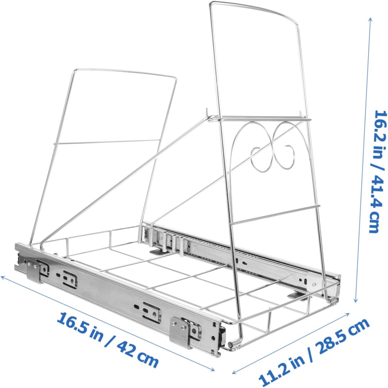 Package Include 1 x pull out slider shelf for kitchen trash can Characteristics -Size:42.00X41.40X28.50cm/16.51X16.27X11.20in pull down shelf -Color:Silver trash pullout for cabinet -Material:Stainless steel pull out organizers - Can be used for kitchen trash can under cabinet, kitchen trash can under sink and other places pull-out shelves for easy access. - Adjustable and simple to use, good bearing capacity, not easy to deform, useful and reliable trash can pull out track. - Strong and stable structure, flexible and convenient to use, you can use it with peace of mind pull out trash can cabinet. - stainless steel material, flexibility and excellent durability, easy to use, for pull out shelf. - The pull out slider shelf for trash can under cabinet is simple to install and easy to use, bring much convenience to you pull out shelf for cabinet.Goods Descriptionpull out bowl rack Simple look design and craftsmanship its durability and practicality.trash pullout for cabinet need useful and pull out shelf for trash can under cabinet? If so, take a quick look at this item.pull-out trash can under cabinet Made of , and