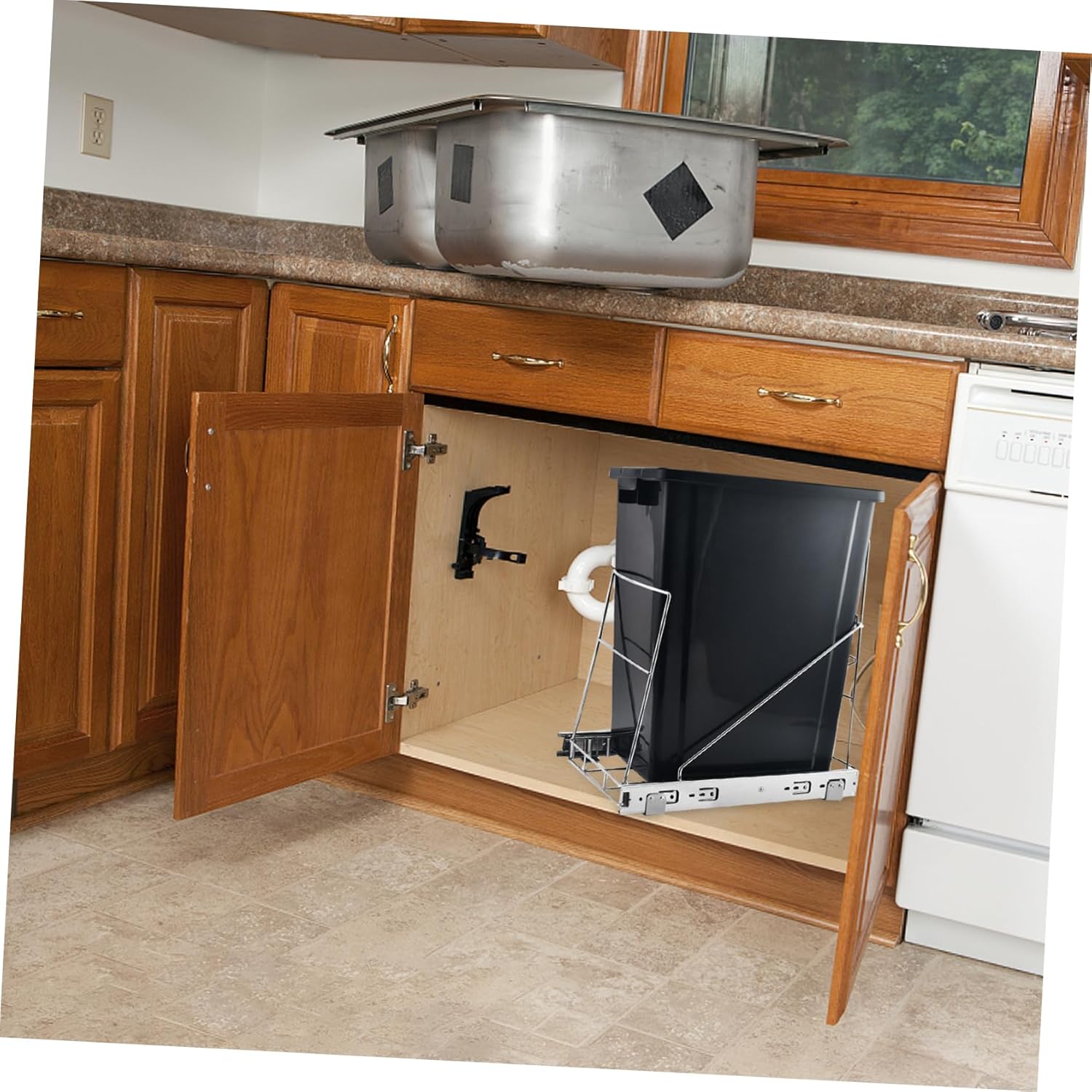Adjustable Pull Out Trash Can Shelf for Kitchen Under Cabinet Slide-Out Slider Bin Rack Space-Saving Kitchen Organizer