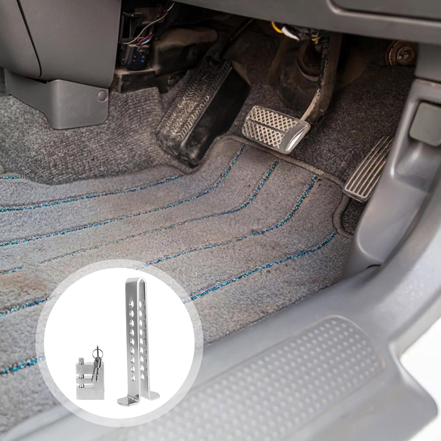 Package List A car anti-theft lock Characteristics -Material:Iron -Versatile application: designed to secure , brake, and accelerator, this lock is compatible with a wide range of vehicle models anti car theft device -Deterrent design: the lock's bright color and distinctive design act as a strong visual deterrent to potential thieves -Product Info:Steering wheel anti-theft lock -Easy to transport: its small and lightweight design makes it easy to carry and install, ideal for everyday use brake lock -Robust construction: constructed from durable metal, this lock offers durability and resistance to tampering anti theft clutch lock brake -Size:23.00X9.00X3.60cm/9.04X3.54X1.41in -Color:Silver -fit: the adjustable ushaped lock can be tailored to fit different steering wheel sizes, providing optimal securityGoods Informationantitheft locking devices To use, align the U-shaped bar with the steering wheel and pedal, adjust the length, and lock it securely.break lock anti-theft device The lock's adjustable design ensures a snug fit on different vehicle models, while its durable construction resists tampering.car club steering wheel lock This versatile steering wheel lock is ideal for safeguarding your car in various environments, whether parked at home, in a public lot, or on the street