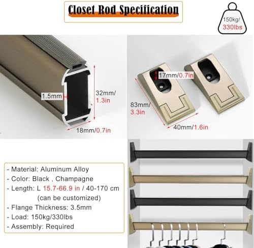 Are you looking for an effective solution to organize your clothes and maximize your storage space? Our versatile closet hanging rod is designed to help you achieve a tidy and efficient wardrobe, making it easier to find what you need. **Specifications** - **Material**: Durable Aluminum Alloy - **Length**: Adjustable to fit your space - **Thickness**: 3.5 mm - **Load Capacity**: 150 kg / 330 lbs - **Assembly**: Required **Key Features** - **Maximize Space**: This hanging rod creates additional hanging space, perfect for small closets or tight areas. - **Robust Design**: Engineered to hold a significant amount of clothing without wobbling, ensuring stability for your garments. - **Non-Slip Technology**: Our innovative design prevents clothes from slipping and keeps them neatly arranged, avoiding contact with walls. - **Versatile Usage**: Ideal for expanding wardrobe space, this rod can be used in various settings, including bathrooms, bedrooms, balconies, patios, and more. - **Easy Installation**: Comes with all necessary installation accessories, including brackets and screws, for quick setup. **Package Includes** 1 × Closet Rod (with installation accessories) **Note** Please allow a measurement variation of 1-3 cm due to manual measurement. Color differences may occur depending on lighting and display settings. Always refer to the actual product for accurate representation. Transform your cluttered space into an organized haven with our closet hanging rod, the perfect addition for anyone seeking practicality and style in their home storage solutions.