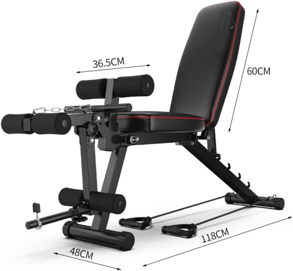 Feature:This stool is adjustable and foldable for full body Workout, which is , compact and effective.This stool offers steel and paint work and has rubber feet to keep the metal frame from damaging flooring and to keep the benchs in place.Equipped with comfortable material and long life protection powder coating.Fashion devise with triangle structure takes you a exercise experience at home.Easy to carry, minimal assembly requirement, can be easily folded to stand on a wall, store in a closet, or slide under a bed.Color: BlackMaterial: steel pipe, foam, leathersize: 118x48x60cmWeight: 14kgThe package includes:1 x Weight Lifting Tablenotes:Due to different lighting and screen , the color of the item may be slightly different from the picture.Please allow for slight size differences due to manual measurements.