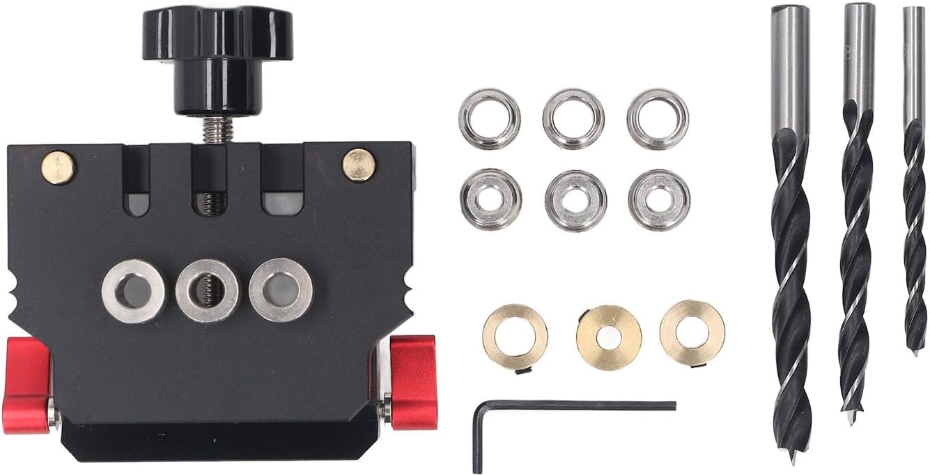 1. For Flat Pack Furniture: This dowel jig, crafted from aircraft grade aluminum, features etched measurements for and accurate positioning, making it suitable for assembling flat pack furniture. 2. Accuracy Drilling System: Equipped with a 3 in 1 drill bit locator and bits in 6mm, 8mm, and 10mm sizes, this jig meets diverse drilling needs for accurate connections between wood panels. 3. Convenient and Portable Tool: Designed for easy transport, this dowel jig enables woodworkers to achieve accurate drilling quickly while making it an essential tool for both professionals and enthusiasts. 4. Robust Construction: Made from 6061 aluminum with a hardened steel center block, this jig combines strength and longevity, offering dependable performance for all your woodworking tasks. 5. Rusting Anodized Finish: The anodized appearance of this dowel jig prevents rusting and ensures a longer lifespan, making it a dependable choice for any woodworking project over the years. Spec: Item Type: Self Centering Doweling Jig Kit Material: Aluminum Alloy Clamping Range: Approx. 12-26mm / 0.47-1.02in Application: for Round Wood Tenon Wood Panel Glue Splicing Drill Bit: Approx. 6mm / 0.24in, 8mm / 0.31in, 10mm / 0.39in How to Use: Directly use it PackageList: 1 x Hole Puncher 3 x Drill Bits 2 x Limiters 6 x Drill Sleeves 1 x Wrench
