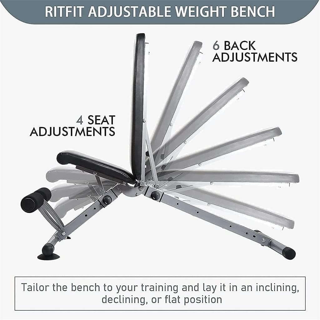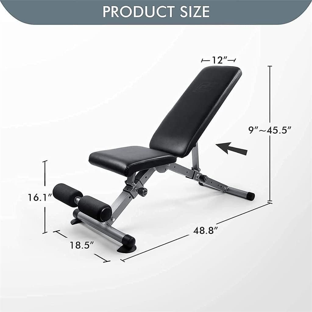 Feature:Multiple gears can be adjusted to meet all your needs during exercise.You can perform a variety of upper and lower limb exercises, and combine dumbbells to achieve your goals and exercise/maintain muscles.It is made of a triangular structure and heavy-duty thick steel, so there is no need to worry about stability.Comfortable and ergonomic design: Use high-density foam cushions and seats to firmly fix the body, reducing muscle fatigue during body fatigue.The foldable fitness bench facilitates quick storage.When not use this foldable bench which can easily fits under the bed or in the closet.Color: BlackMaterial: SteelWeightCapacity: 800lbsOverall Size(L x W): 124x47x115cmThe package includes:1 x Weight Lifting Tablenotes:Due to different lighting and screen , the color of the item may be slightly different from the picture.Please allow for slight size differences due to manual measurements.