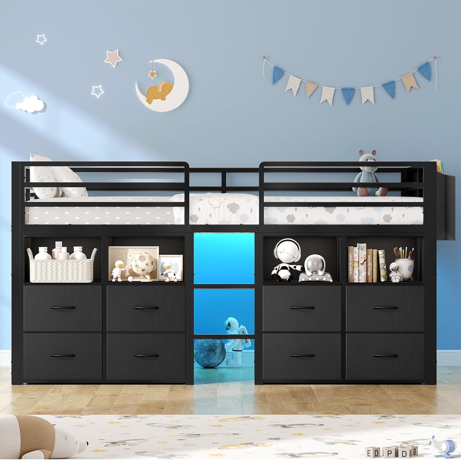 | Other Special Features of the Product | Loft Bed with 8 Fabric Drawers, Storage Bookcases, and LED Lights, 14" H Safety Guardrail, Noise Free, No Box Spring Needed,Space-Saving,Squeak Resistant |