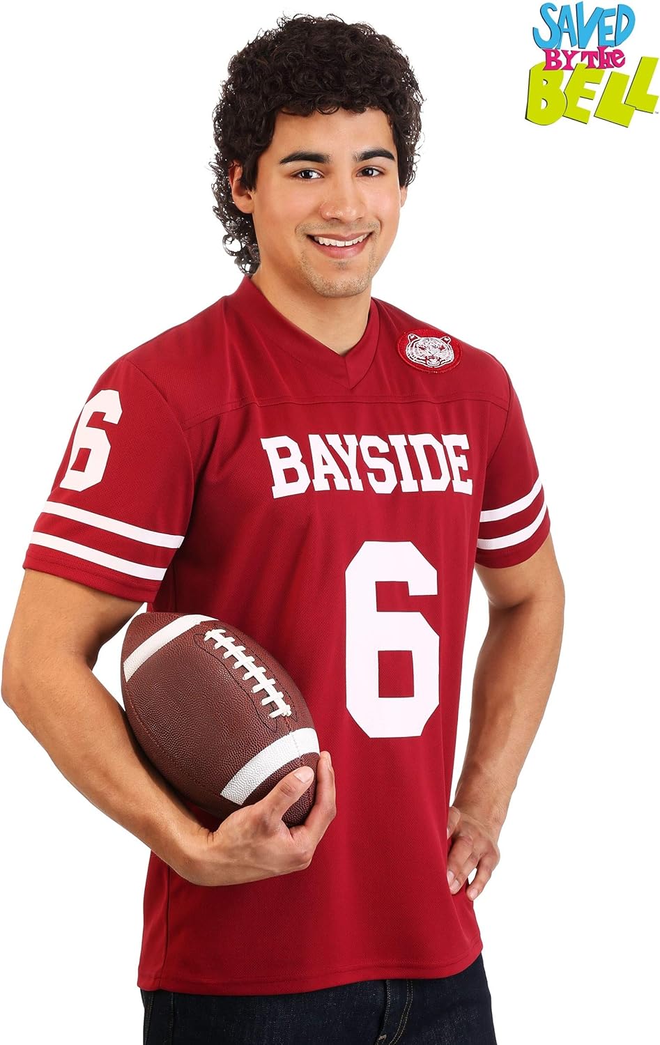 Channel the nostalgia of the classic TV show with this authentic A.C. Slater costume from "Saved by the Bell." Prepare to be the life of the party as you step into the iconic red football jersey, complete with the Bayside school name, Slater's #6, and the Bayside Tiger patch. This officially licensed costume captures the essence of the beloved character and will transport you back to the halls of Bayside High. With its comfortable elastic fabric and easy-care instructions for machine washing on a delicate setting, this costume is both stylish and convenient for your next costume event. The included wig adds the perfect finishing touch to transform you into the one and only A.C. Slater. Ideal for Halloween, theme parties, or pop culture conventions, this costume is sure to make you stand out in style. Embody the spirit of the '90s with this must-have outfit that pays homage to one of the most iconic teenage dramas of its time. Order yours today and get ready to show off your Bayside spirit with this classic A.C. Slater costume.