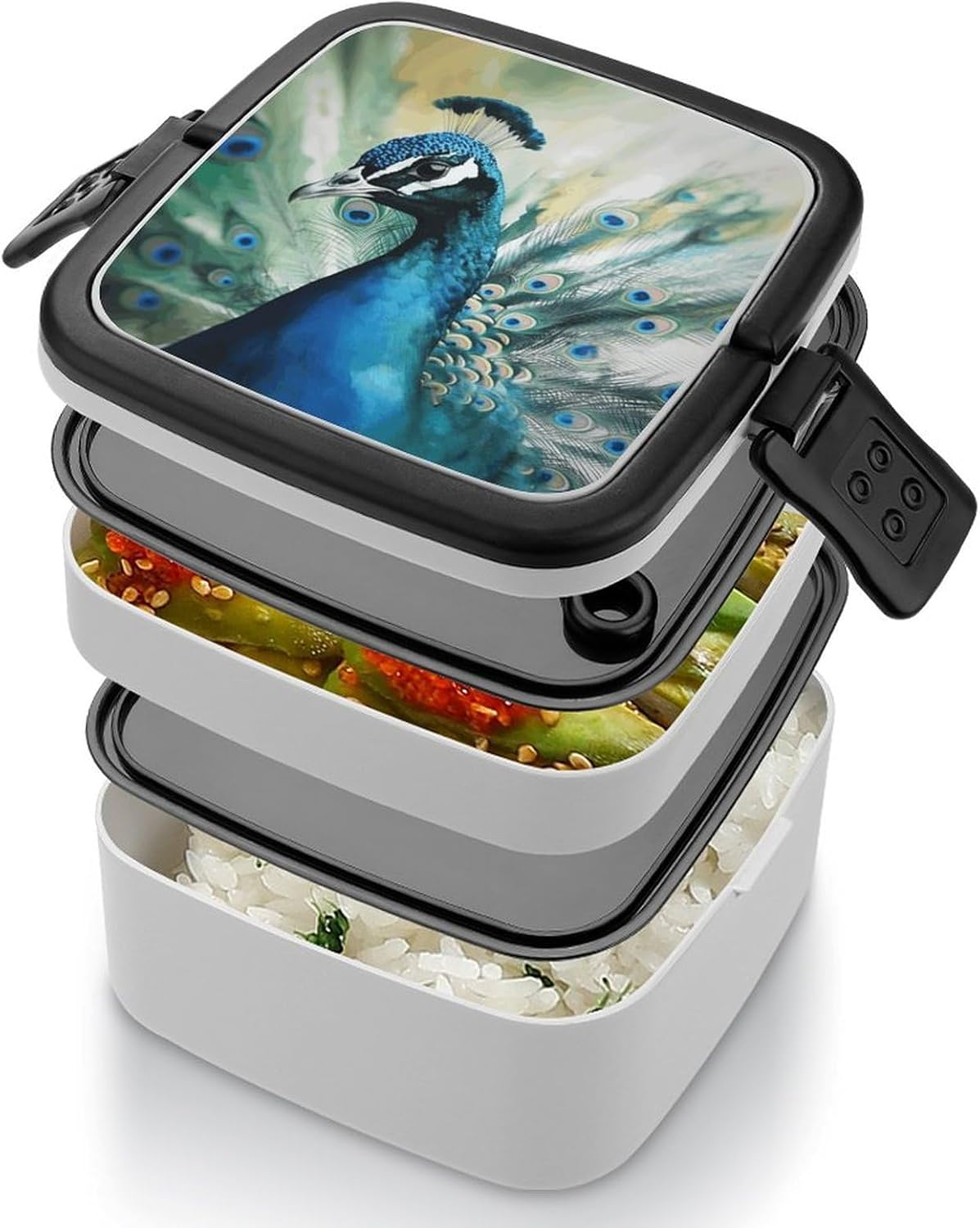 This box adult Bento Box is a must - have for those who are always on the go. Made from high - quality PP material, it's not only sturdy but also safe for storing foodThe double - layer design:lunch box large for women The tight - fitting seal ensures that no food leaks out, whether it's a juicy salad or a soupy dish. Plus, it keeps the food's smell inside, so you don't have to worry about any unpleasant odors in your bagThe clever divider design is another highlight:Cute Peacock cooler lunch box It allows you to neatly separate different types of food. You can put your fresh vegetables in one section, fruits in another, and some snacks in the third. This way, each food item retains its original taste, giving you a wonderful dining experienceCarrying this bento box is a breeze:modern bento The snap - lock mechanism makes it easy to open and close, and the attached handle means you can carry it around effortlessly. Whether you're going to work, on a camping trip, or just out for a day of fun, this bento box is your perfect companionadult bento:Suitable for traveling, taking meals to work, taking fruits, camping and traveling, very light and portable. Washable and reusable. [Special Instructions] Note: This product cannot be put into the microwave