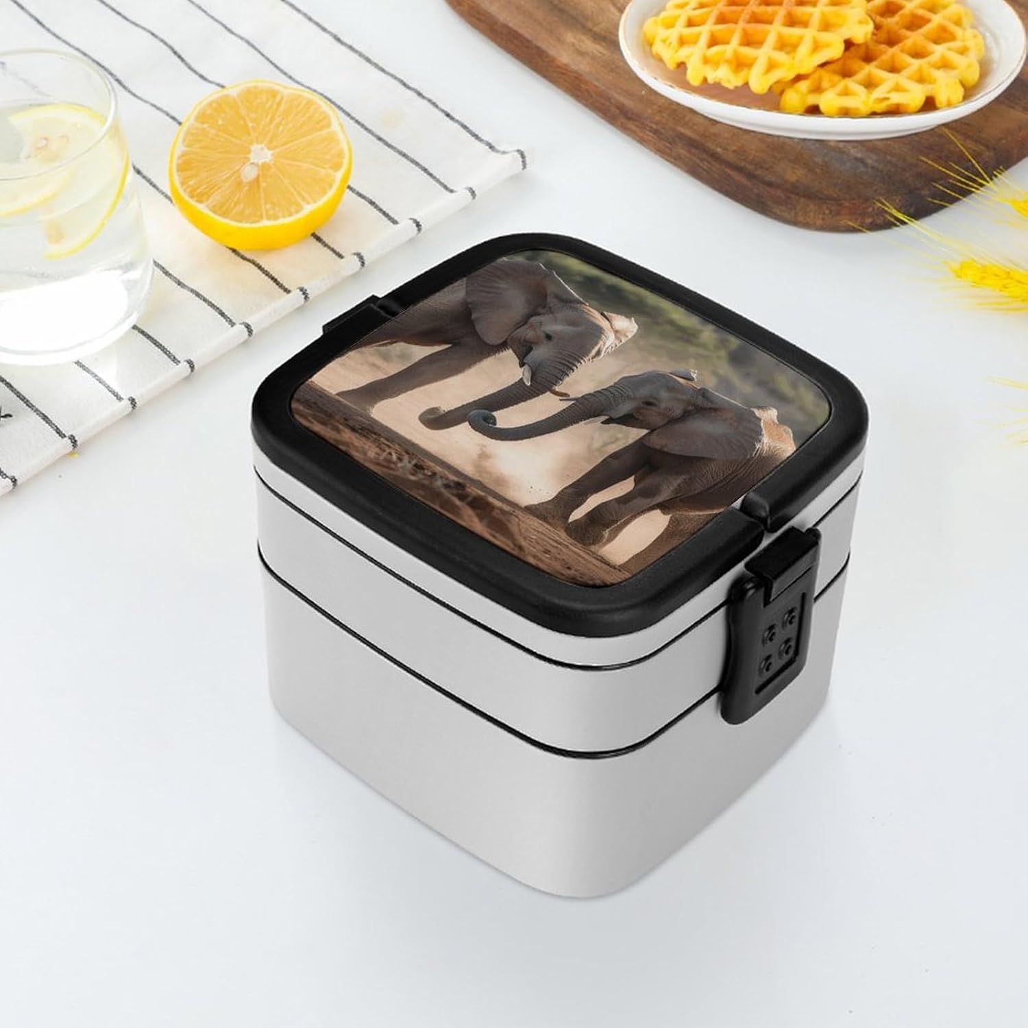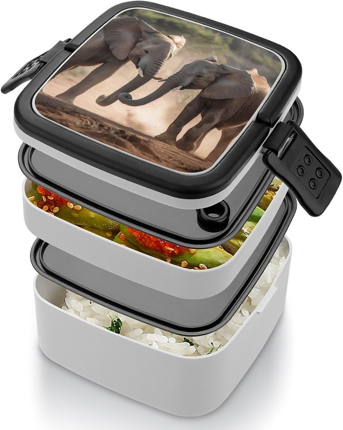 This box adult Bento Box is a must - have for those who are always on the go. Made from high - quality PP material, it's not only sturdy but also safe for storing foodThe double - layer design:lunch box large for women The tight - fitting seal ensures that no food leaks out, whether it's a juicy salad or a soupy dish. Plus, it keeps the food's smell inside, so you don't have to worry about any unpleasant odors in your bagThe clever divider design is another highlight:Two Elephants Playing cooler lunch box It allows you to neatly separate different types of food. You can put your fresh vegetables in one section, fruits in another, and some snacks in the third. This way, each food item retains its original taste, giving you a wonderful dining experienceCarrying this bento box is a breeze:modern bento The snap - lock mechanism makes it easy to open and close, and the attached handle means you can carry it around effortlessly. Whether you're going to work, on a camping trip, or just out for a day of fun, this bento box is your perfect companionadult bento:Suitable for traveling, taking meals to work, taking fruits, camping and traveling, very light and portable. Washable and reusable. [Special Instructions] Note: This product cannot be put into the microwave