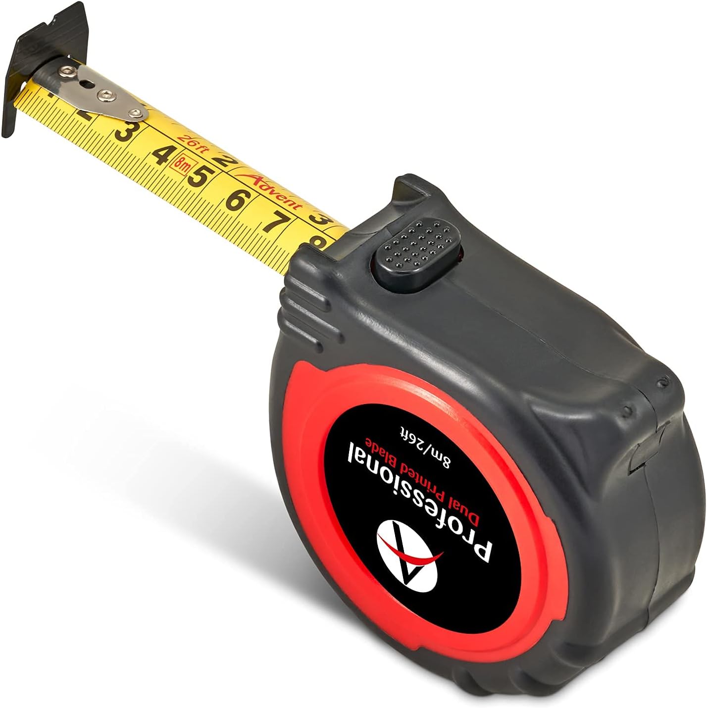 Product Description The Advent Dual Printed Tape, does exactly what it says on the tin, or rather the tape. This tape is designed to solve the problem of measuring over head. The blade is marked on both sides, with both metric and imperial measurements. All Advent tape measures are classified as Class II accurate and have a 25mm blade width; giving impressive stand-out ability and making it easy to read at a glance. The blade is encased in a plastic outter with a rubber ABS casing to protect it, this is one tough tape. Set Contains: 1 x 8M tape measure