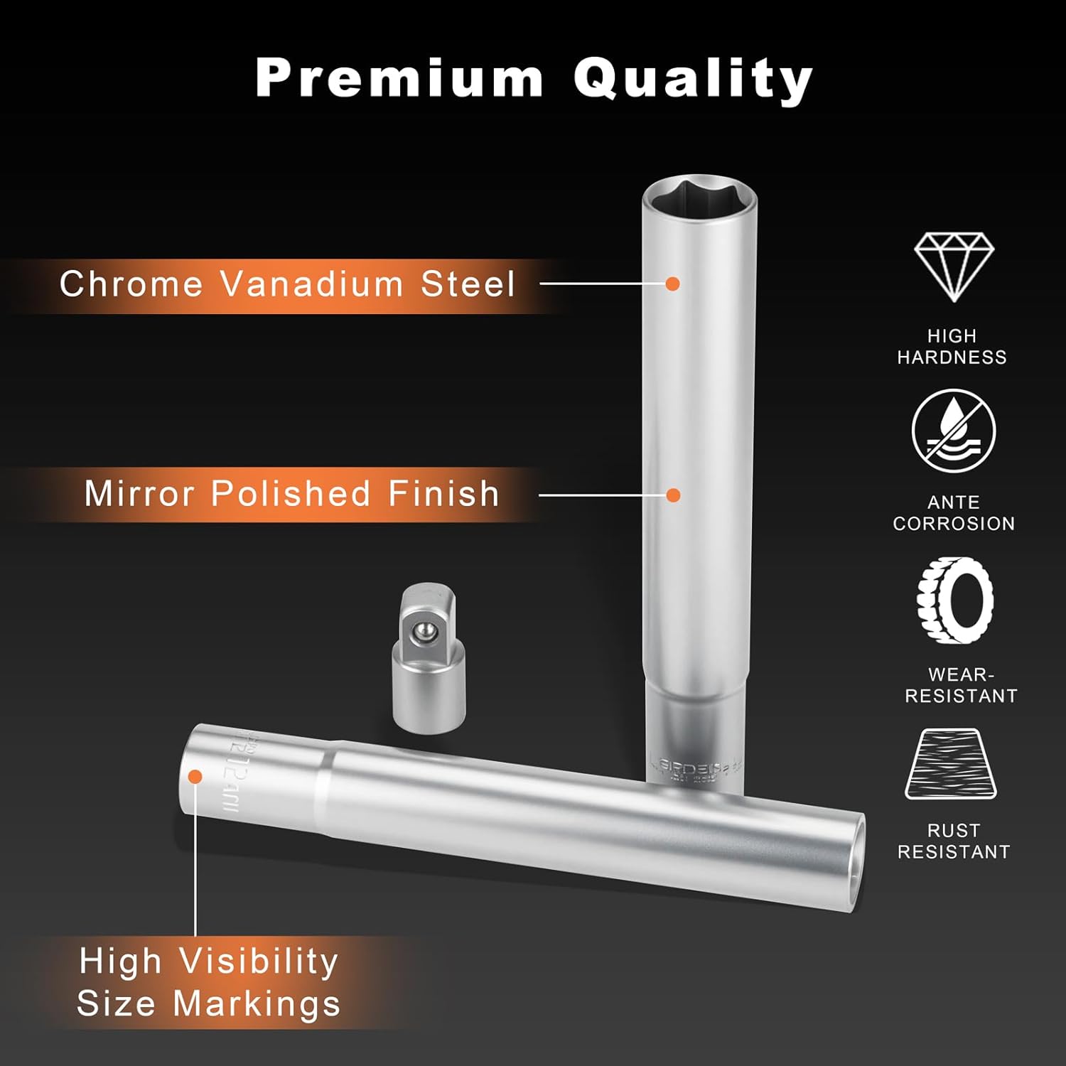 AEROFORCE 6-Piece 3/8-Inch Drive Extra Deep (120mm) Metric Socket Set - Includes 8,10,12,13,14mm Sockets & 1/4-Inch Adapter - Chrome Vanadium Steel for Automotive Tools