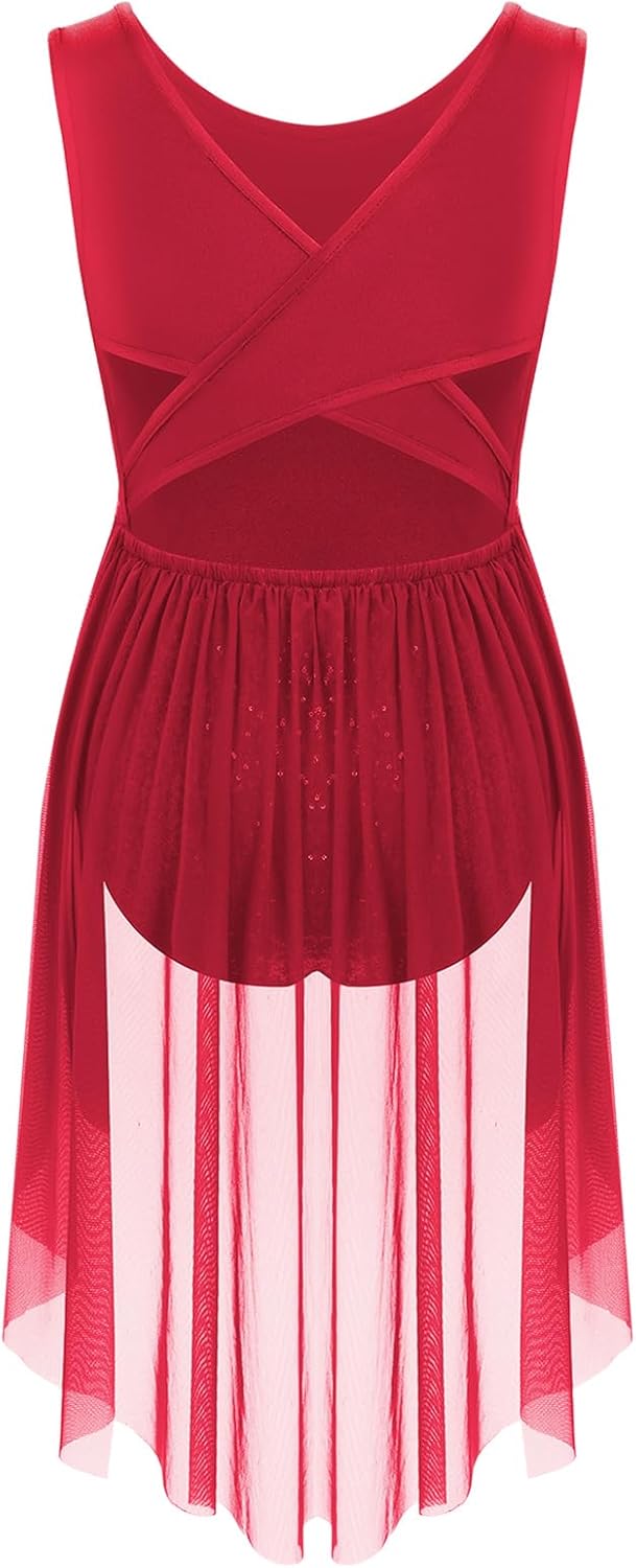 - Asymmetric Flowy Mesh Tulle Skirt: Lyrical dance costumes for women adult sequins contemporary modern dance dress. Asymmetric lyrical dance dress for women, 1 layer mesh skirt attached with the pleated ruffle waist, asymmetric irregular high low hemline, flowy design shows femininity, and the softness and beauty of dance. Lyrical overlay tulle dance skirt, built-in ballet leotard bodysuit, allows for ease and freedom of movement, shows your charming and flattering when dancing or twirling.