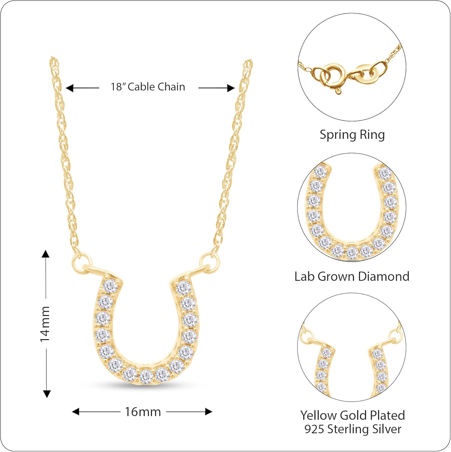 Elevate her jewelry collection with this elegant Horseshoe Pendant Necklace featuring a dazzling combination of Cubic Zirconia, Moissanite, Lab Grown or Natural White Diamonds. The classic horseshoe-shaped pendant, measuring 14.00mm in height and 16.00mm in width, symbolizes good luck, positivity, and timeless elegance, making it a meaningful and memorable piece. Expertly crafted from 925 sterling silver and plated with 14K gold, the necklace offers lasting shine and durability, while the 18-inch rope chain ensures a comfortable and secure fit for daily wear or special occasions. Its versatile design complements casual, business, and evening outfits, making it perfect for birthdays, anniversaries, engagements, weddings, Valentine’s Day, Mother’s Day, Christmas, graduations, or milestone celebrations, and serves as a thoughtful and cherished gift for daughters, wives, mothers, sisters, or close friends.