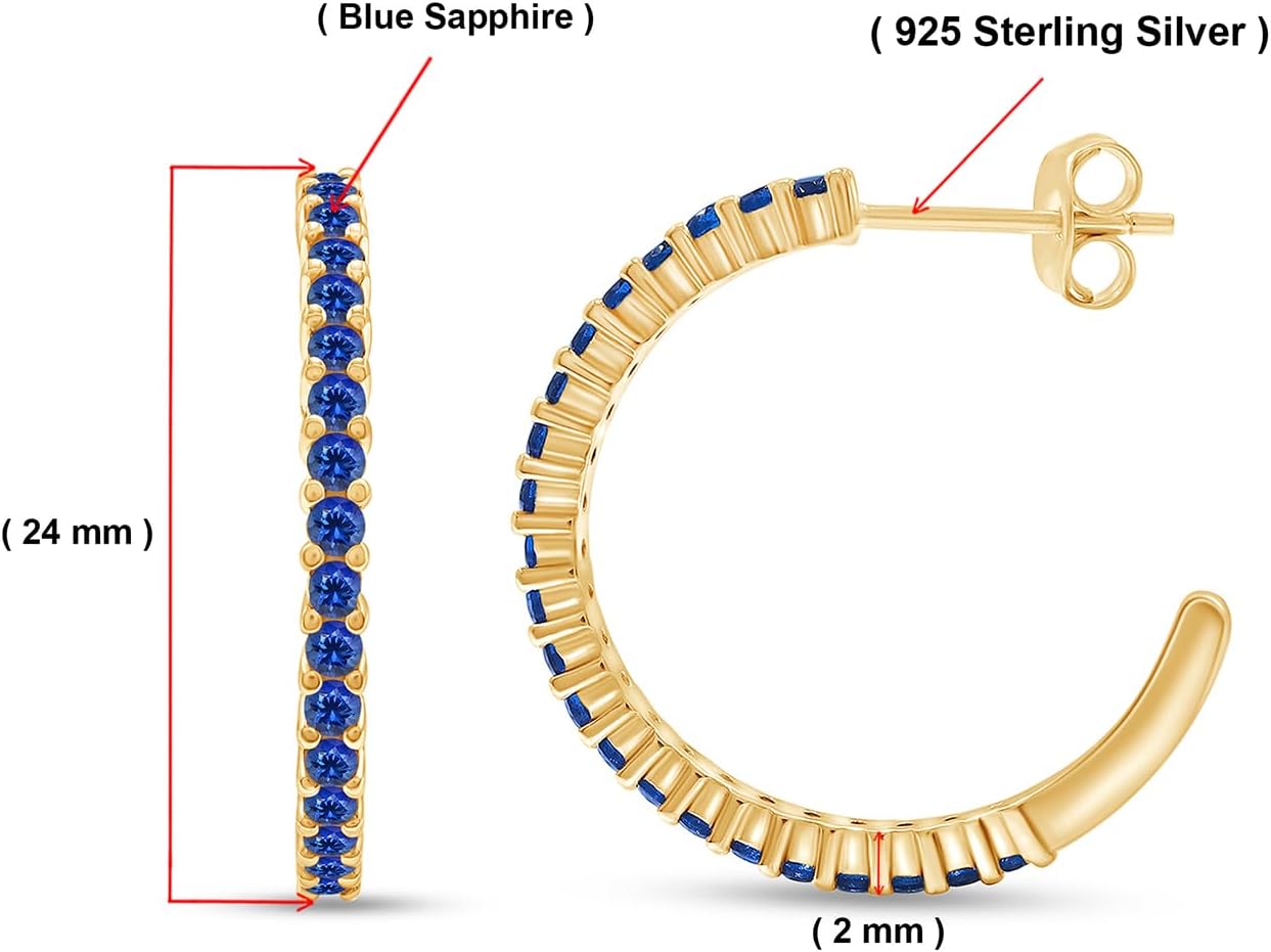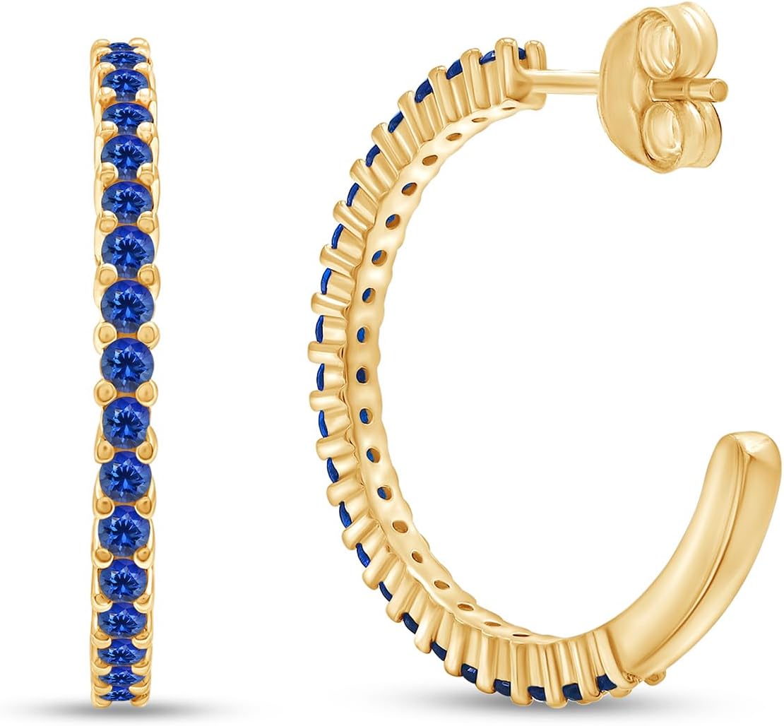 Jewelry has the power to be this one little thing that can make you feel unique, AFFY Round Simulated Blue Sapphire Single Row Hoop Earrings For Women In 14K Gold Over Sterling Silver With Push Back Jewelry For Women. Absolutely a great gift to express your love for your mother, girlfriend, fiancee, wife, valentine, family or just a friend,etc. Great gifts on Mother 's Day, Wedding, Anniversary day, Valentine's Day or Christmas Day