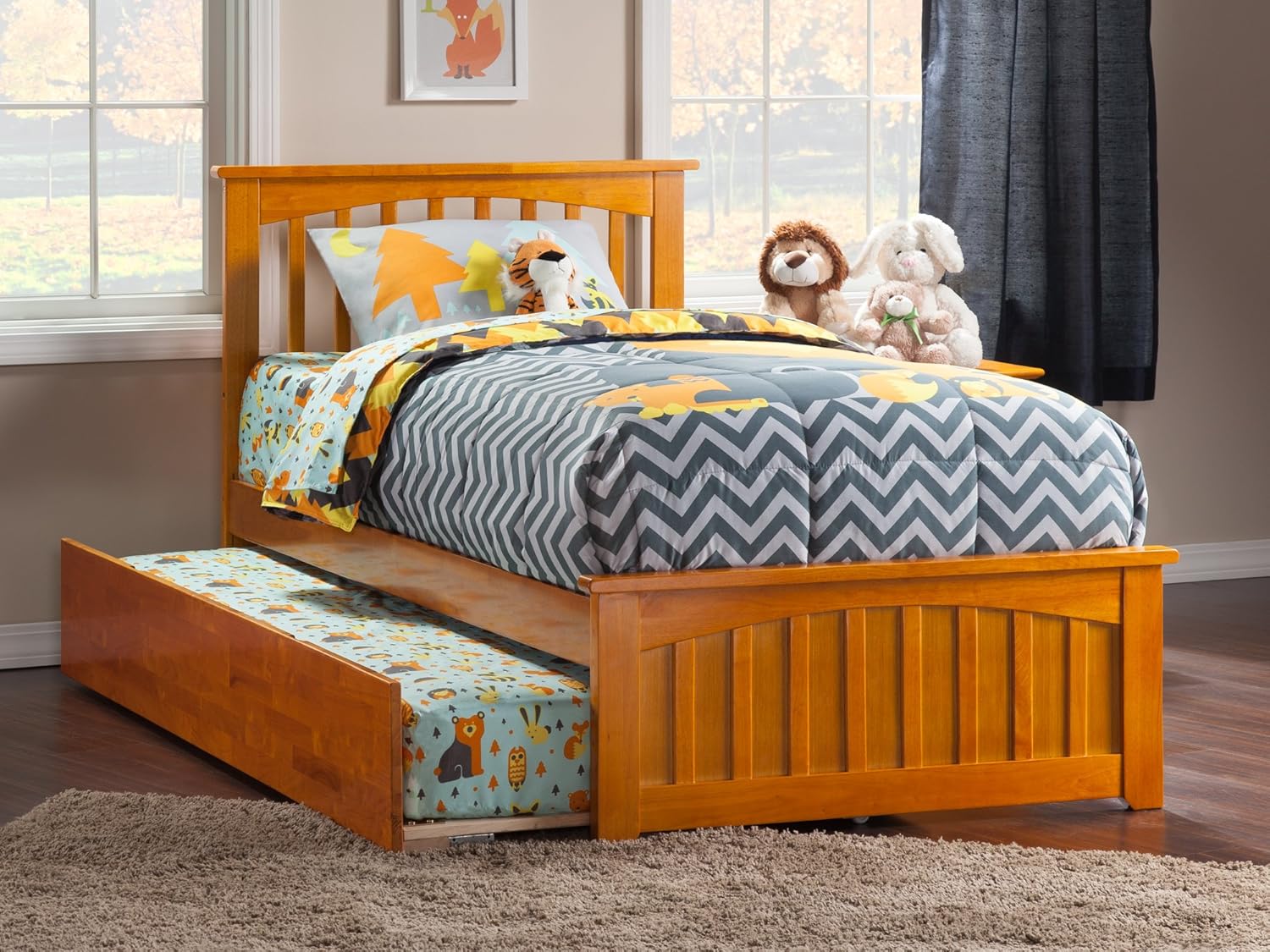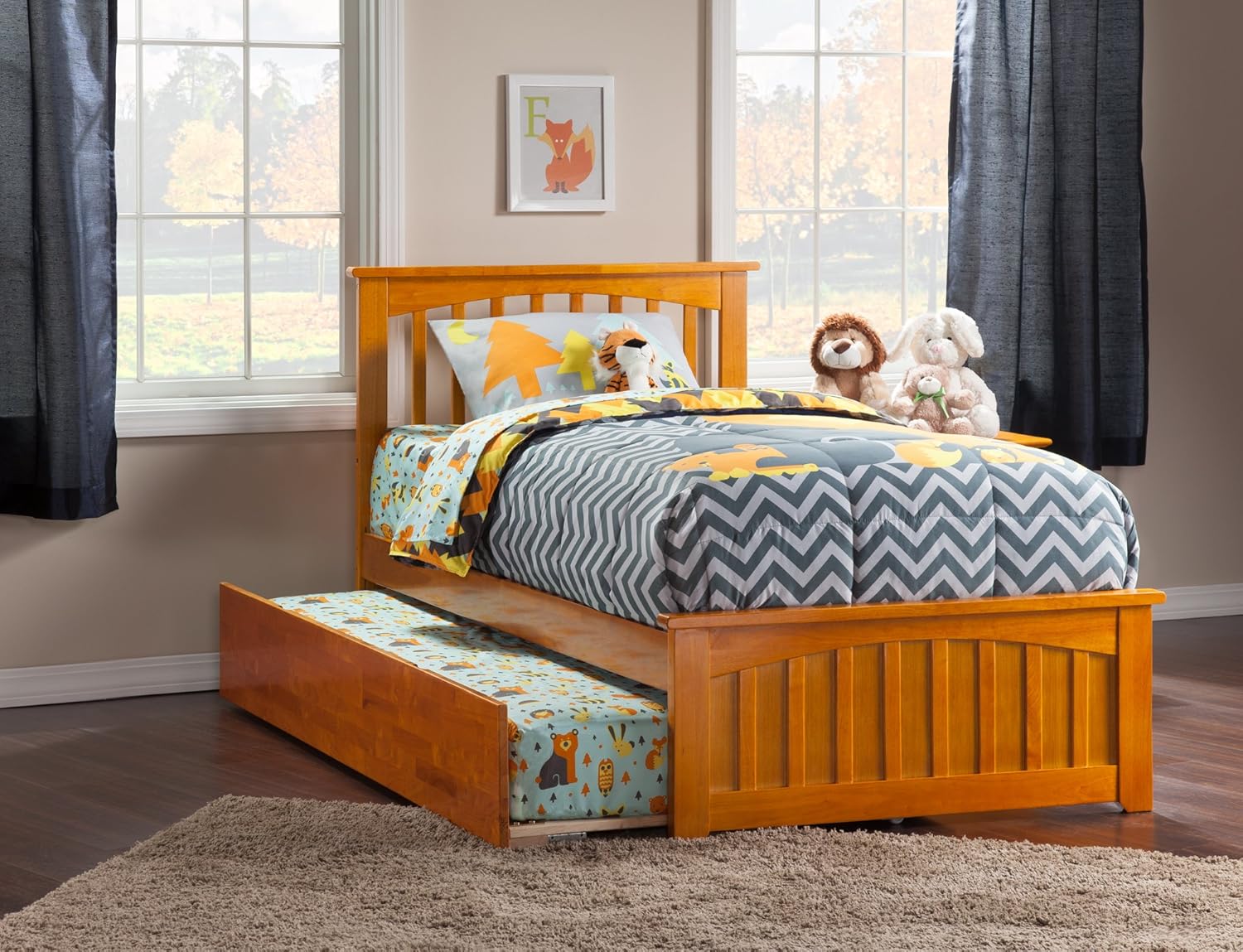 The elegance lies within the traditional, slatted headboard of the Mission Bed, a piece that also offers the opportunity for extra sleeping space with the option of a trundle. Twin and full size beds accommodate the added space, an extra area that can be utilized with ease and is seamlessly hidden when not in use.
