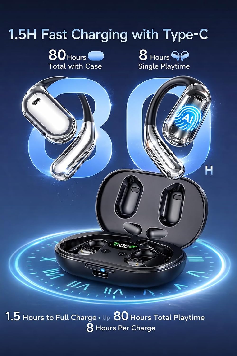 | BuiltIn Media | charging compartment, pair of headphones, Type-C cable |