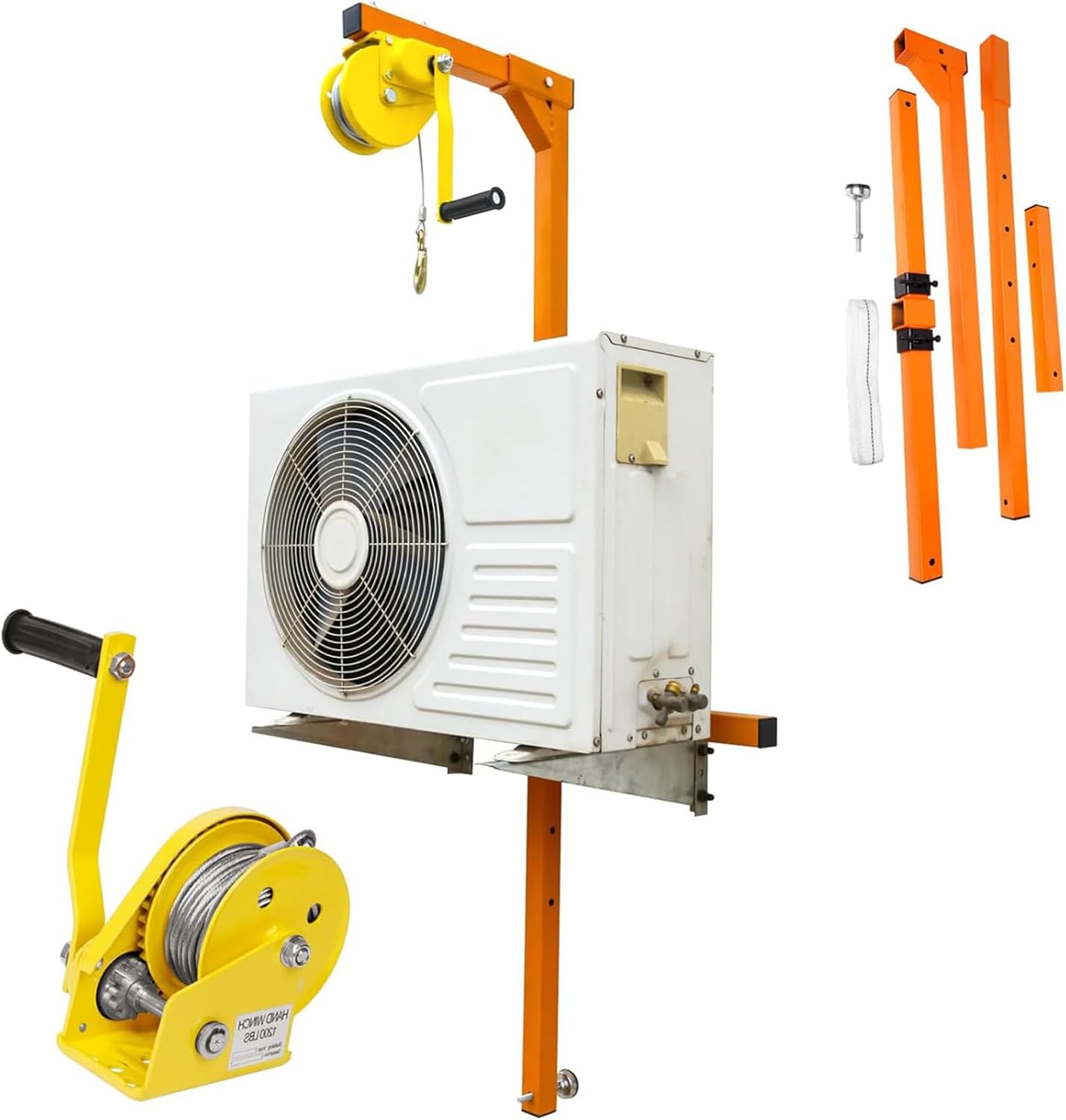 Welcome to our shop! Experience a seamless air conditioning installation with our innovative air conditioner lift tool, designed for both professionals and DIY enthusiasts. This essential tool ensures safe and efficient lifting of outdoor AC units, making your installation process smoother and more reliable. **Key Features:** - **Self-Locking Winch:** Our detachable winch includes a two-way self-locking mechanism that keeps your air conditioning units securely in place during installation, preventing any accidental slips. - **Triangular Bracket Design:** The sturdy triangular design enhances stability, significantly reducing the risk of accidents while lifting heavy equipment. - **Quick Assembly:** Featuring a user-friendly detachable design, this lift tool enables fast setup, saving you time and effort on the job. - **Durable Steel Construction:** Crafted from high-quality, reinforced steel tubing, this lift tool is built to withstand multiple uses, ensuring long-term reliability. **Specifications:** - **Product Name:** Air Conditioner Lift Tool - **Cable Thickness:** 4 mm - **Load Capacity:** Up to 150 kg - **Winch Model:** 10-30 meters - **Ideal Use:** Perfect for installation, lifting, maintenance, and disassembly of air conditioning units. **Package Includes:** 1 x Specialized bracket for AC installation 1 x Specialized pulley for AC installation 1 x Wire rope **Important Notes:** 1. Color variations may occur due to different monitor settings. 2. Manual measurements may result in slight deviations of 1 to 3 cm. We appreciate your understanding. 3. For any questions regarding our products or sizes, please feel free to contact us; we will respond within 24 hours. Elevate your air conditioning installation with our dependable lift tool. Enjoy the advantages of a stable, efficient solution that enhances your workflow and ensures safety during every project.