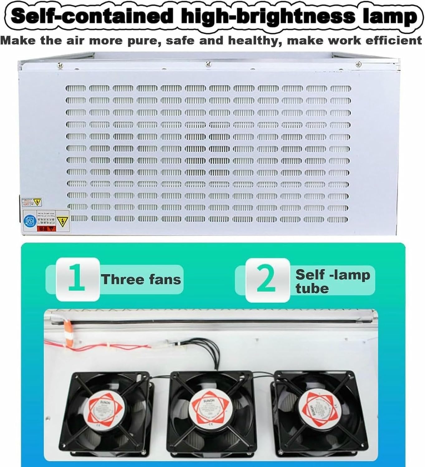 The high cleaning and dust free work tower is designed for precision tasks that require a clean environment.Built with aluminum support, it guarantees durability and stability.The characteristics include vertical direction of the air flow, suitable for voltage of 220 v/110 V and dimensions of 67 x 31 x 59 cm.The work platform measures 62 x 31 cm, with a weight of the 9 kg package.The accessories included are a static curtain, rubber pad and lower plate for greater functionality.Ideal for a variety of applications such as laboratory work, telephone repair, clean rooms, mycology, manual welding, welding, immersion can, metal marked, cosmetology and chemistry experiments.The package includes a dusting work bank.