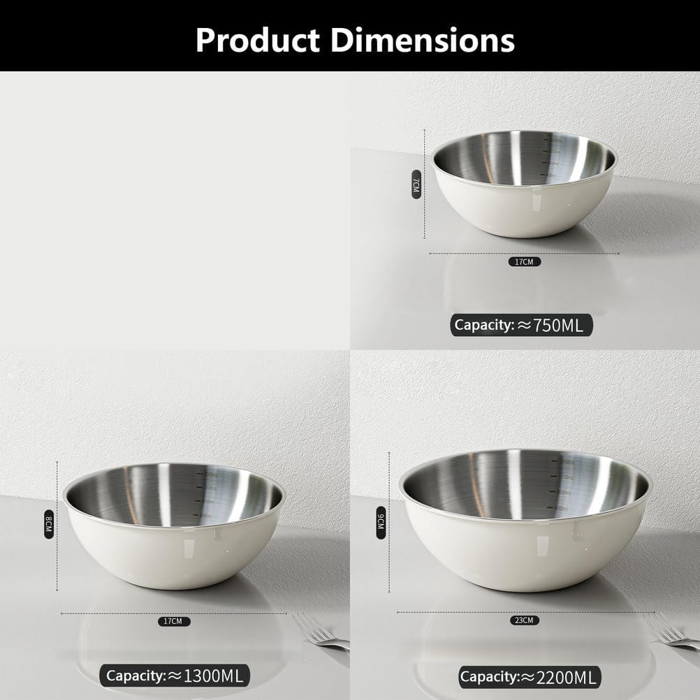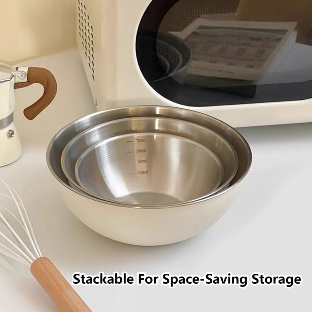 This mixing bowl set is made of stainless steel, making them sturdy and durable. The metal bowl is suitable for serving both hot soups and cold drinks. They can be used by the whole family as serving bowls, food preparation bowls, and ice cream bowls. This nesting bowls is suitable for various occasions, such as restaurants, home kitchens, hotels, banquets, and outdoor picnics.Specifications:Name: Mixing Bowl SetMaterial: Stainless SteelaPackage includes:3 x Mixing Bowl Note:1. Due to manual measurement, please allow for size differences, thank you.3. Due to the difference between different monitors, the actual color may be slightly different from the color shown in the pictures.