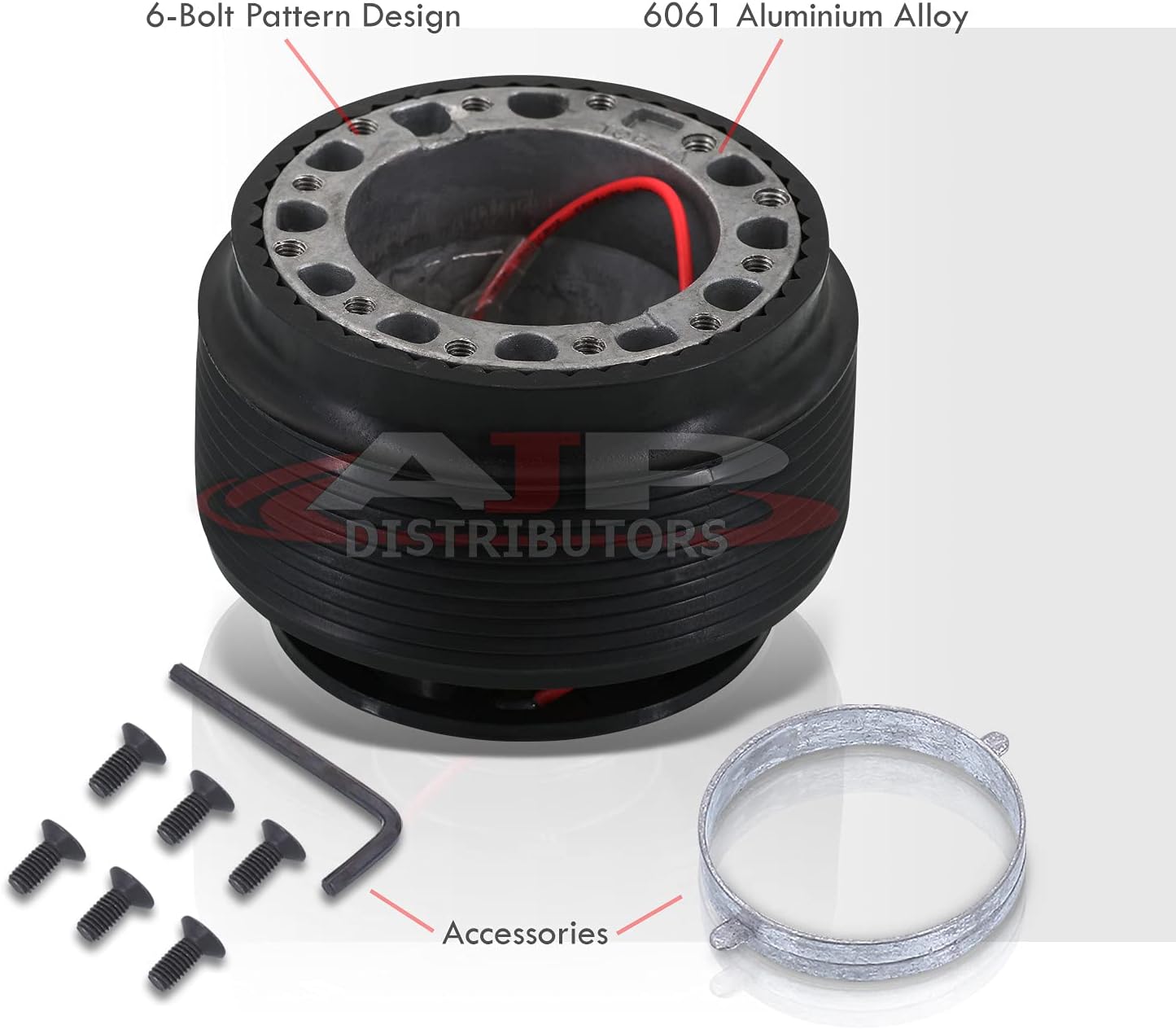 100% brand new items, never used or installed.6-bolt pattern aluminum steering wheel hub adapter.Made by OEM approved manufacturers with materials that meets or exceeds strict OEM requirements.Manufactured from high quality CNC machined AL6061-T6 billet aluminum with an anodized finish for superior strength and corrosion protection.Direct bolt-on fitment designed for use of an aftermarket quick release and steering wheel setup.Comes with steering wheel adapter hub only - horn button not included.* This will only attach to an aftermarket quick release or steering wheel combination - will not work on OEM steering wheels. *No installation guides are included, we highly recommend seeking professional installation.Compatible/Replacement for:for 1996-2005 Civicfor 2000-2006 S2000for 2016-2020 GS-Ffor 2016-2017 GS200tfor 1993-2006 GS300for 2018-2019 GS300for 2007-2020 GS350for 1998-2000 GS400for 2001-2007 GS430for 2007-2018 GS450hfor 2008-2011 GS460for 2008-2014 IS-Ffor 2016-2017 IS200tfor 2006-2015 IS250for 2001-2005 IS300for 2016-2024 IS300for 2006-2024 IS350for 2022-2024 IS500for 2013-2016 FR-Sfor 2004-2006 xAfor 2004-2015 xBfor 2008-2014 xDfor 2005-2016 tCfor 2013-2024 BRZfor 1989-1996 4Runnerfor 2017-2020 86for 1987-2024 Camryfor 1982-1993 Celicafor 1984-1989 Corolla (AE86)for 1990-2024 Corollafor 1983-1992 Cressidafor 2007-2014 FJ Cruiserfor 2022-2024 GR86for 1991-1996 Land Cruiserfor 2003-2014 Matrixfor 1985-1993 MR2for 1992-1997 Paseofor 1987-1996 Pickupfor 1994-1998 Suprafor 1995-2024 Tacomafor 1990-1998 Tercel200