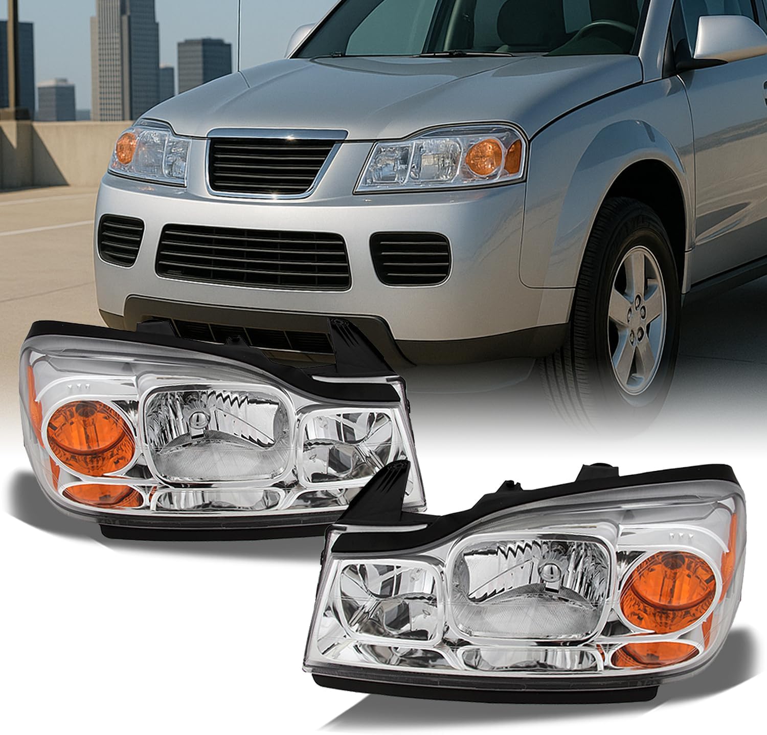 This is a 100% brand new pair of Headlights Replacement Assemblies in Polished Chrome Housing With Crystal Clear Lens Compatible With: 06-07 Saturn Vue All Models