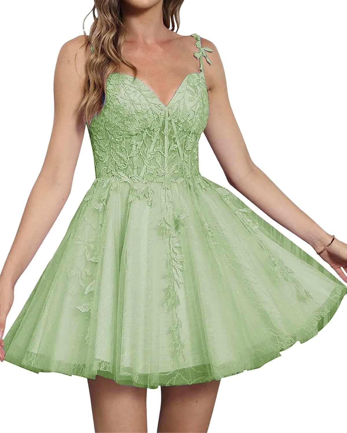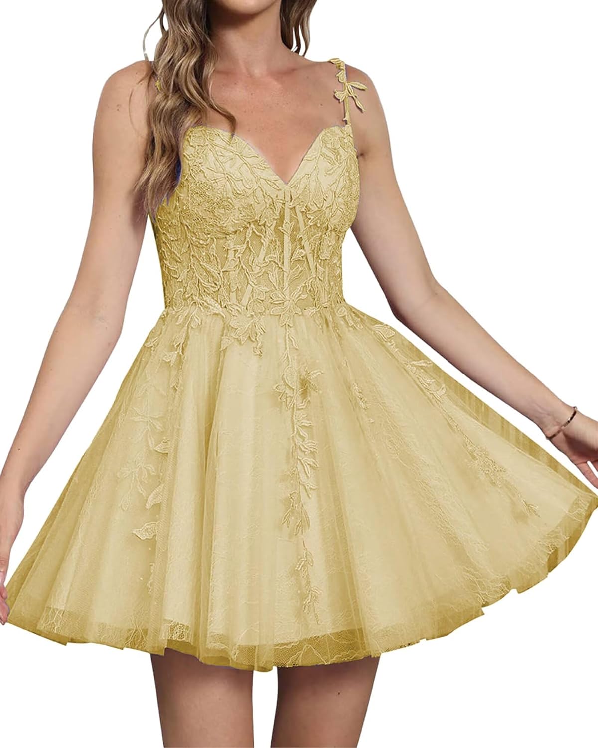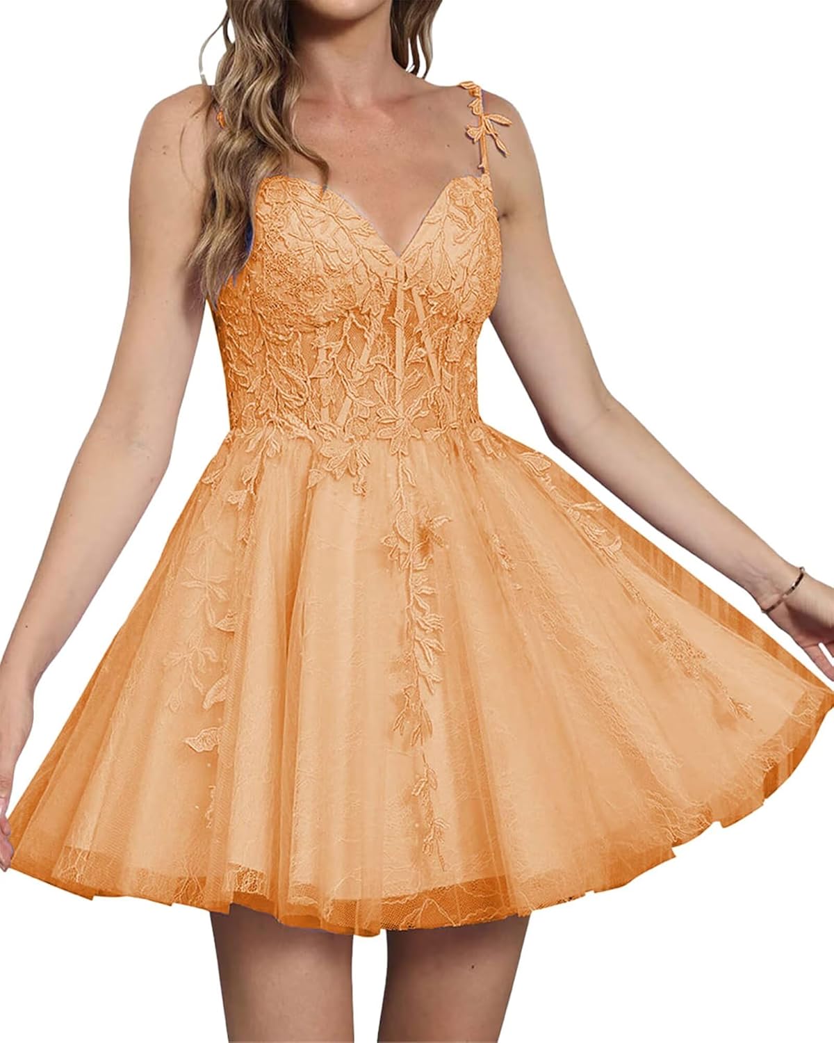 | Embellishment Feature | A Line, Lace Appliques, Plus Size, Spaghetti Straps, V Neck |