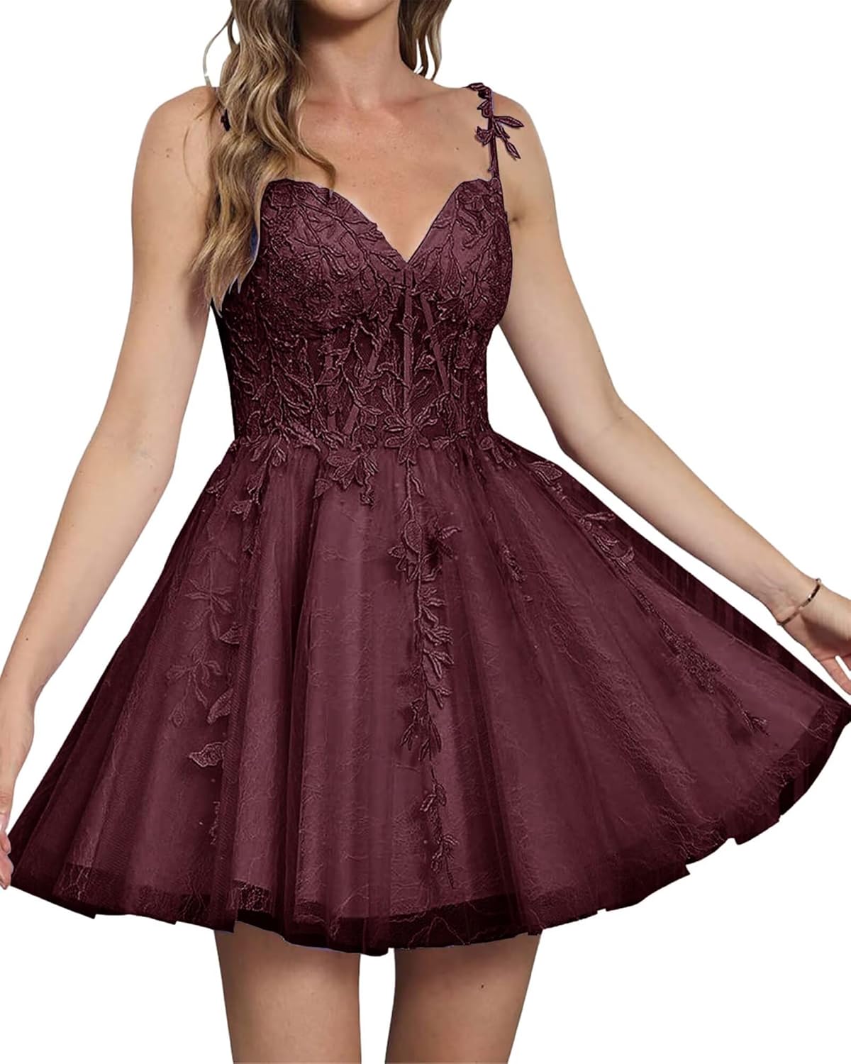 | Occasion Type | Floral Tulle, Homecoming Dresses, Lace Applique, Sexy Backless, Short |