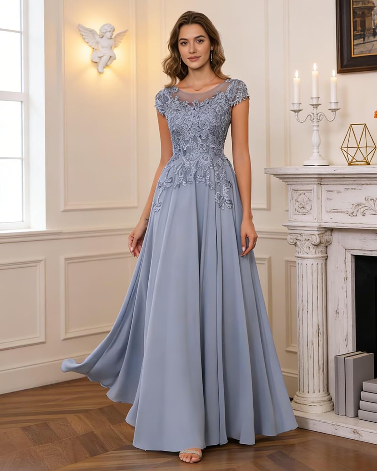 | Material Type | Chiffon, Lace Applique |